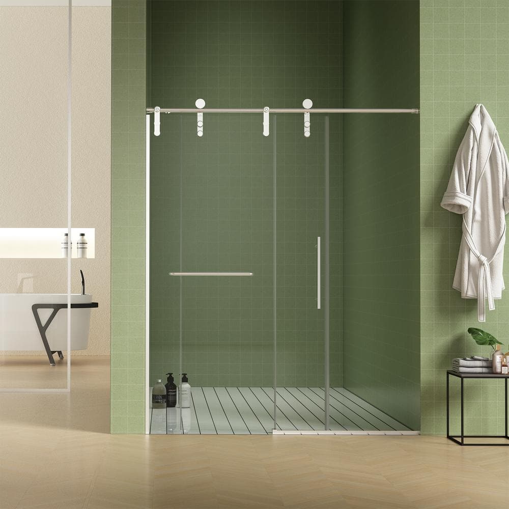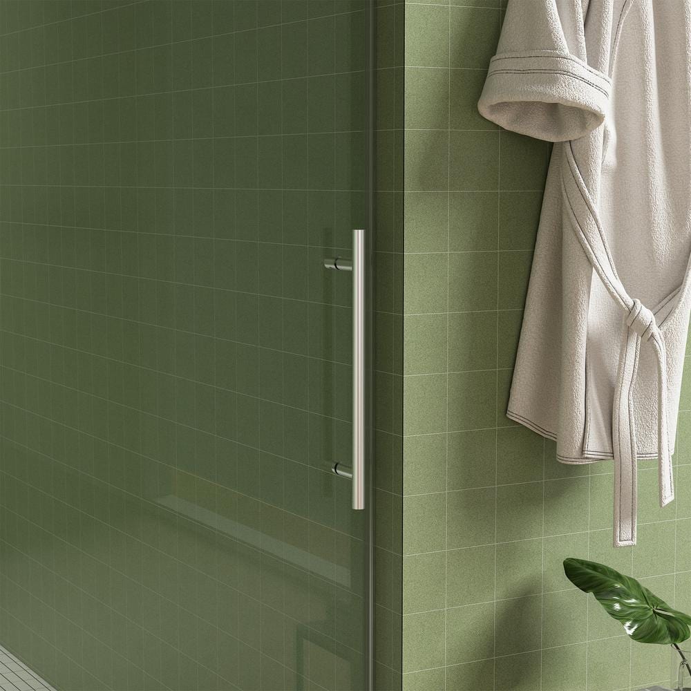 Transform your bathroom into a serene oasis with the ES-DIY Frameless Sliding Shower Door. The minimalist design, crafted from 5/16 in. tempered glass, creates an open and airy spa-like environment while the soft-closing feature ensures effortless operation. Finished in stylish nickel, it adds a touch of elegance and practicality with durable construction for long-lasting use.