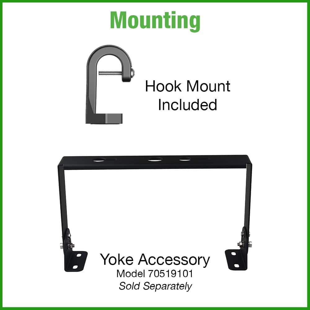 A: This product includes multiple mounting options, including Hook Mount, Ceiling Mount, Yoke Pendant Mount, Junction Box Mount, and Pendant Step Mount.