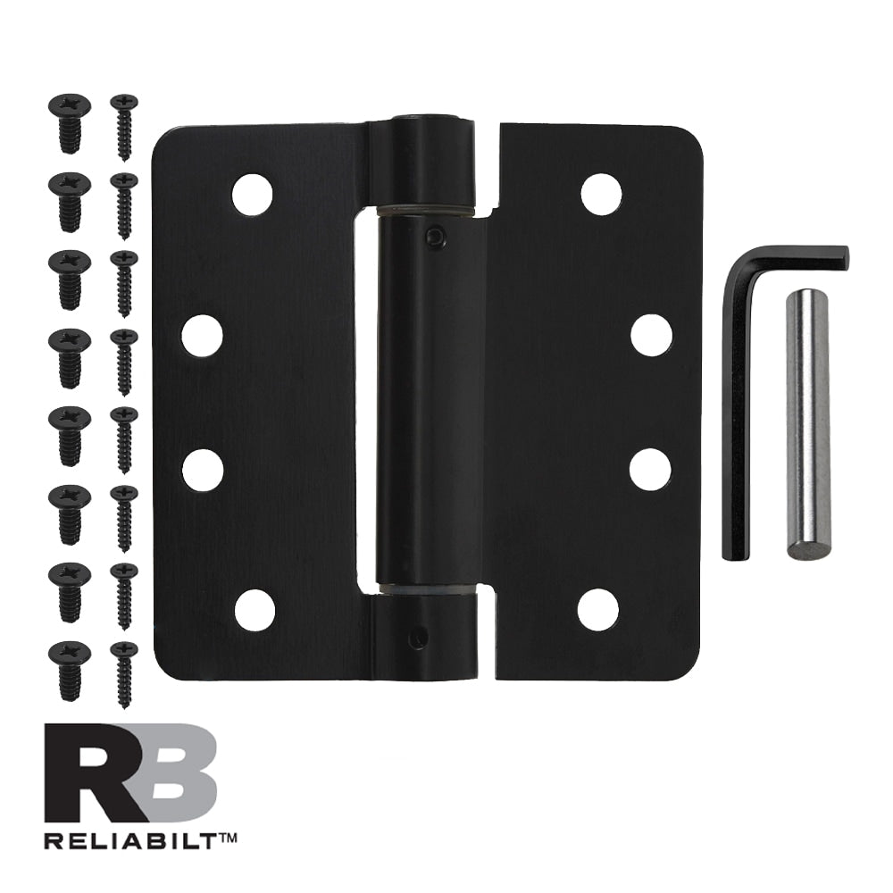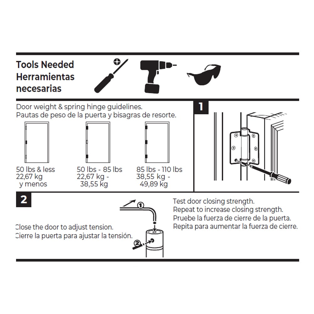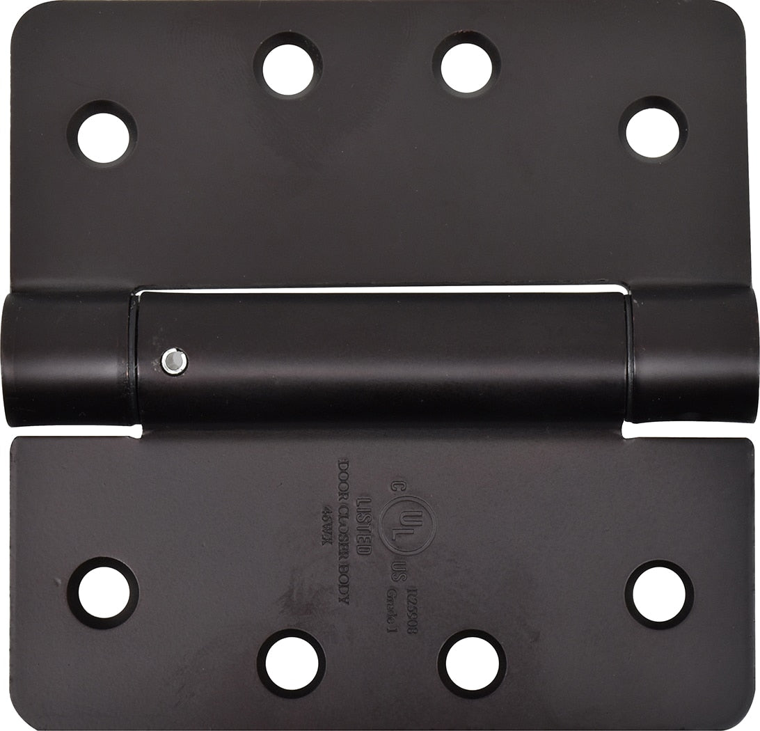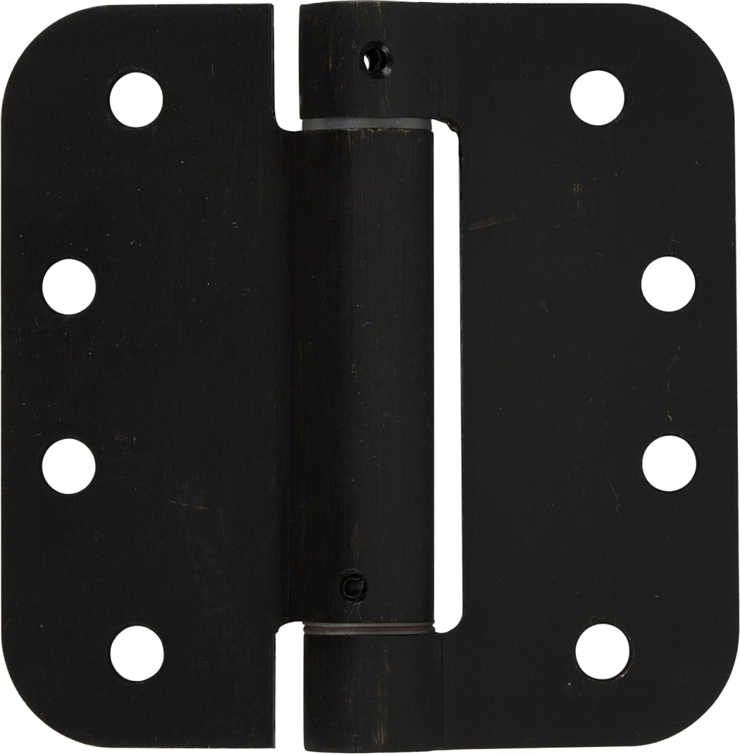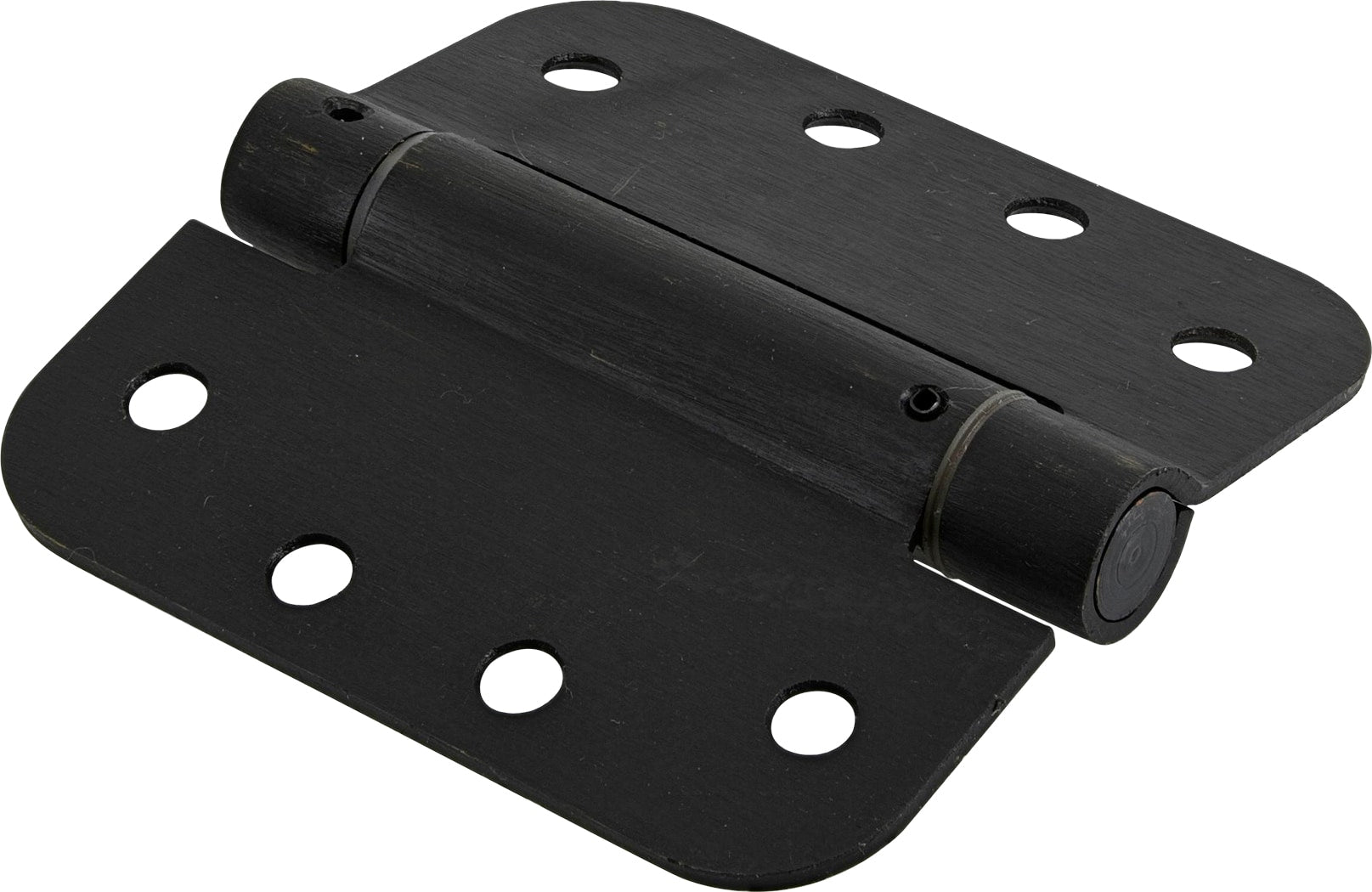 An adjustable spring door hinge that automatically closes interior doors for added convenience and safety. Built from steel with an oil-rubbed bronze finish and 5/8-in radius corners, it’s designed for standard 4-in hinges and includes mounting hardware.