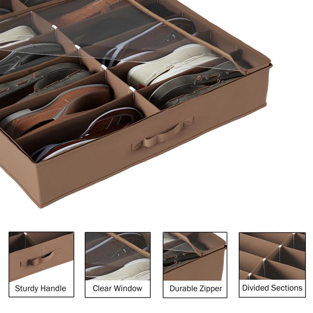 Underbed Shoe Storage Organizer Set, 12-Pair, Zippered Cover