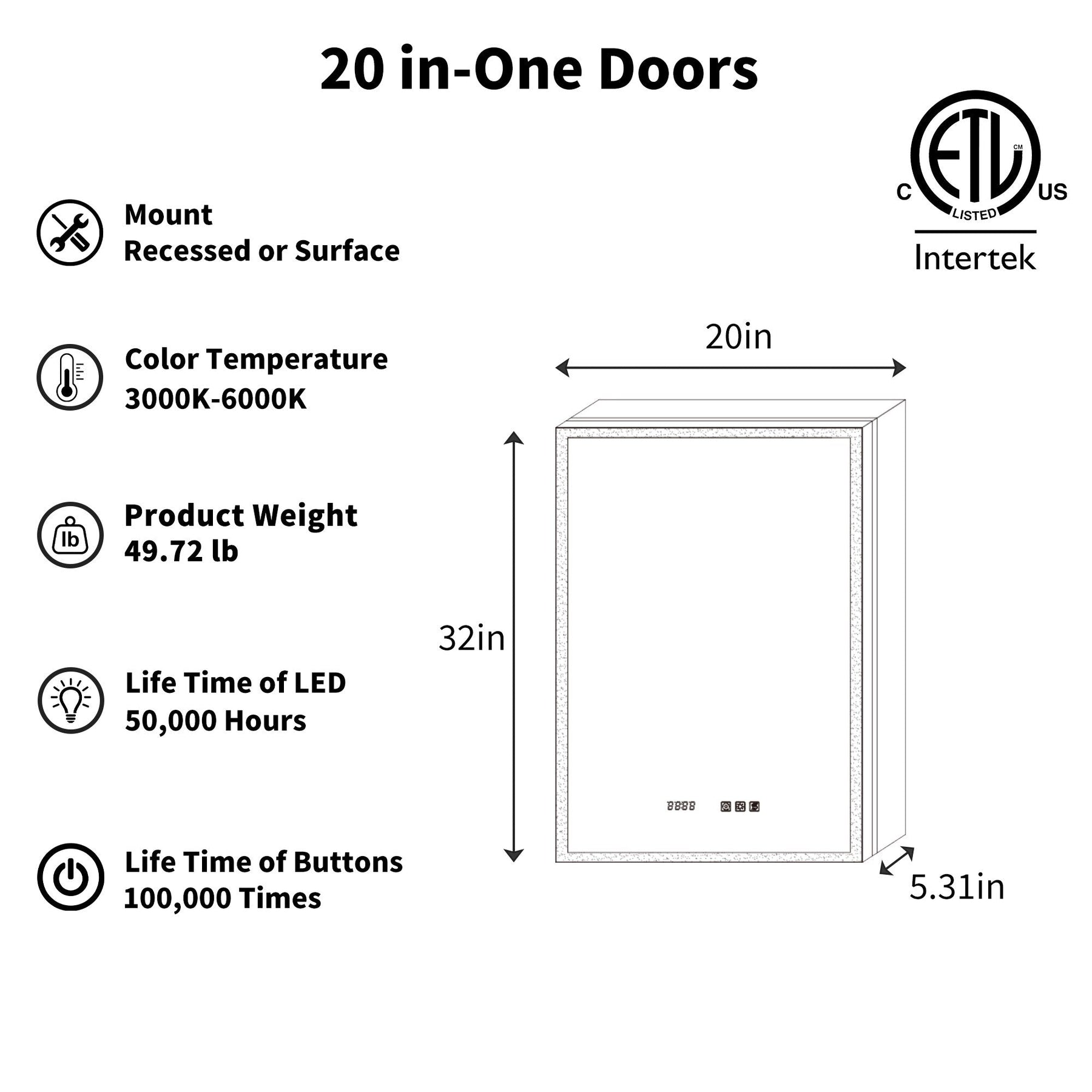 Elevate your bathroom with the ExBrite 20 x 32 LED Fog-Free Medicine Cabinet, featuring modern-day essentials like stepless dimming, anti-fog technology, and a built-in outlet. This multi-functional cabinet combines practical storage with cutting-edge illumination for a truly customized user experience.