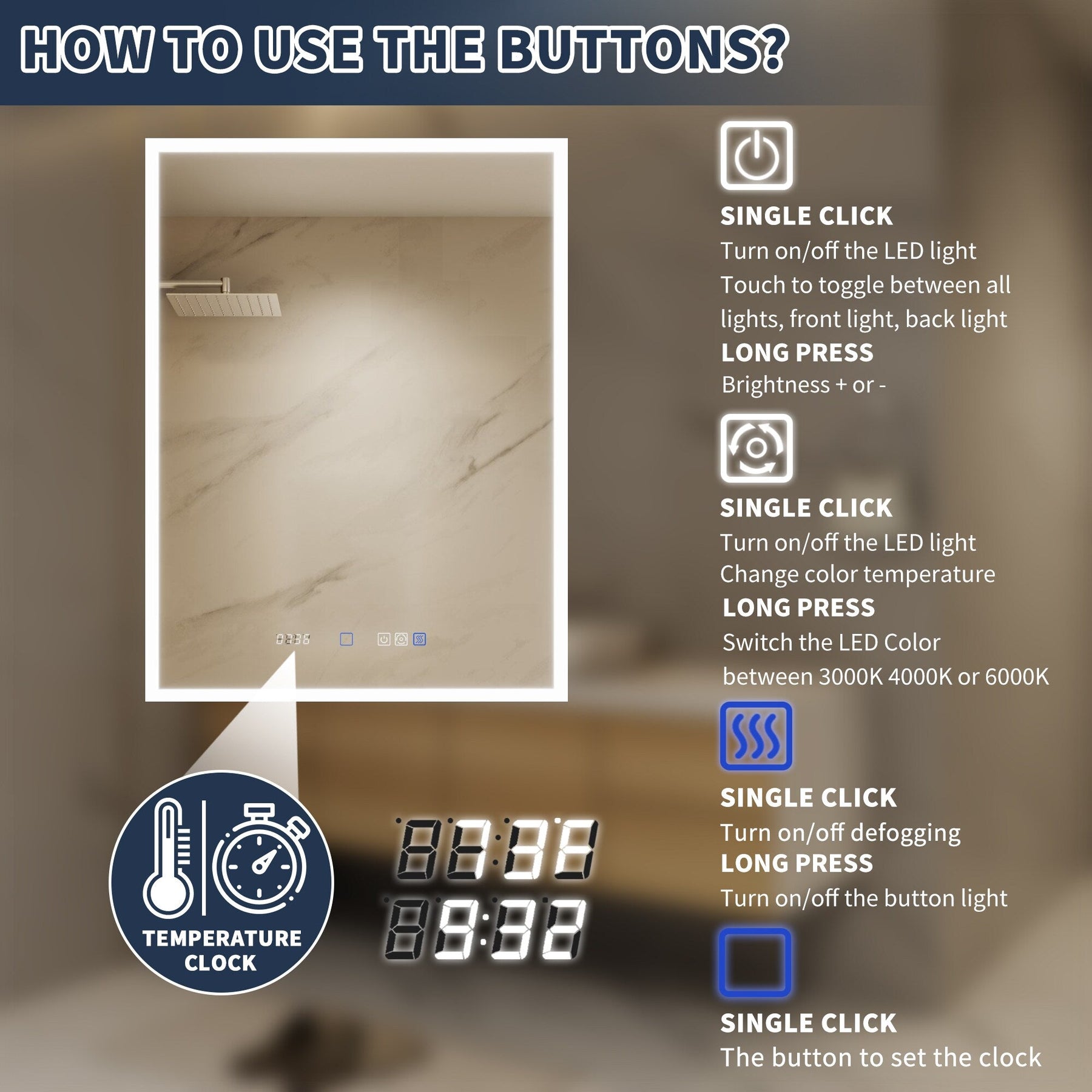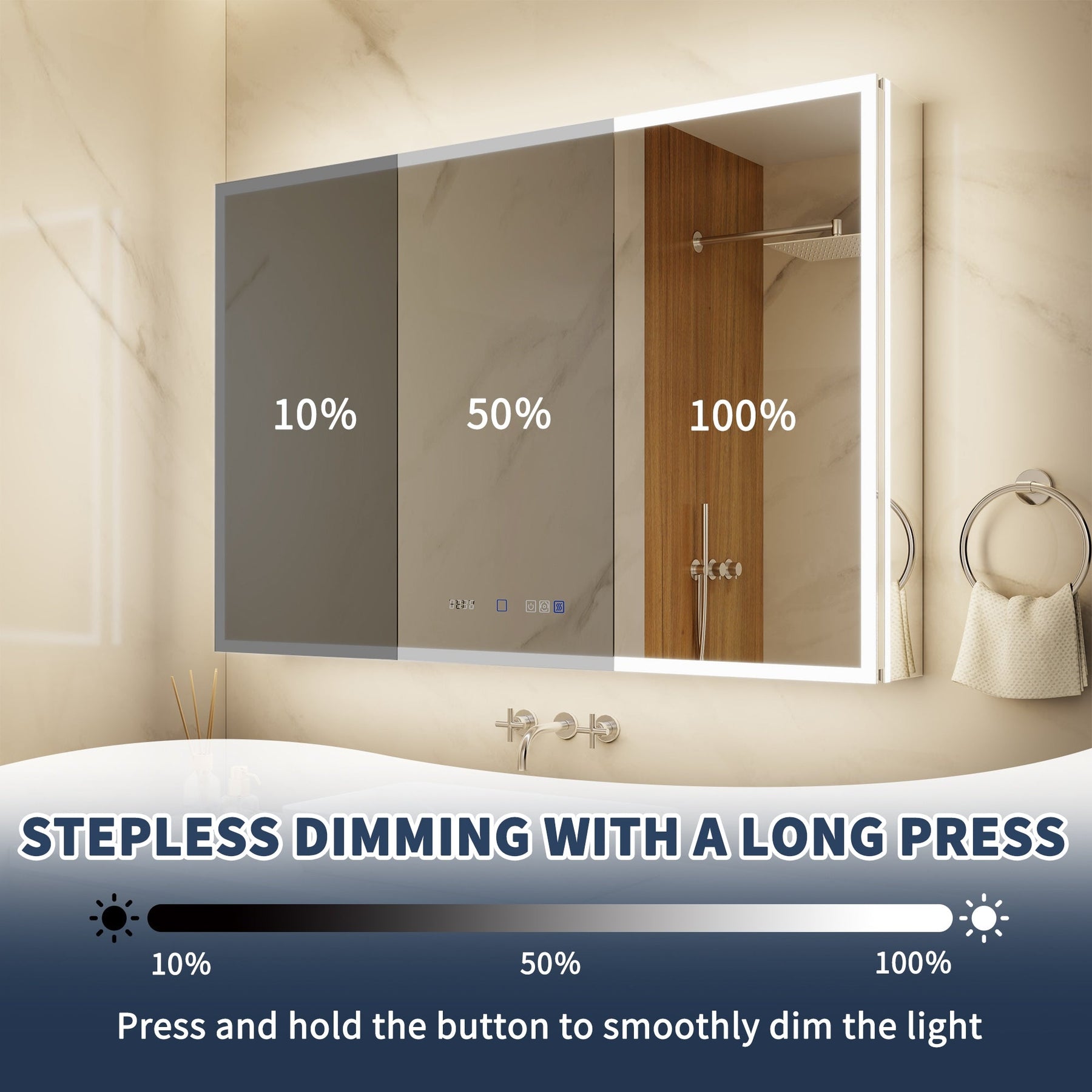 Fog-Free Mirror: Built-in anti-fog function ensures a clear reflection in steamy bathrooms.