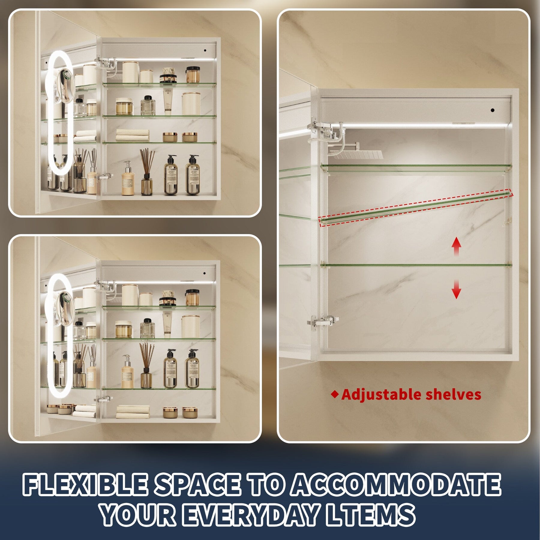 Illuminate your bathroom with the ExBrite LED Medicine Cabinet and experience transformative elegance and modern convenience.