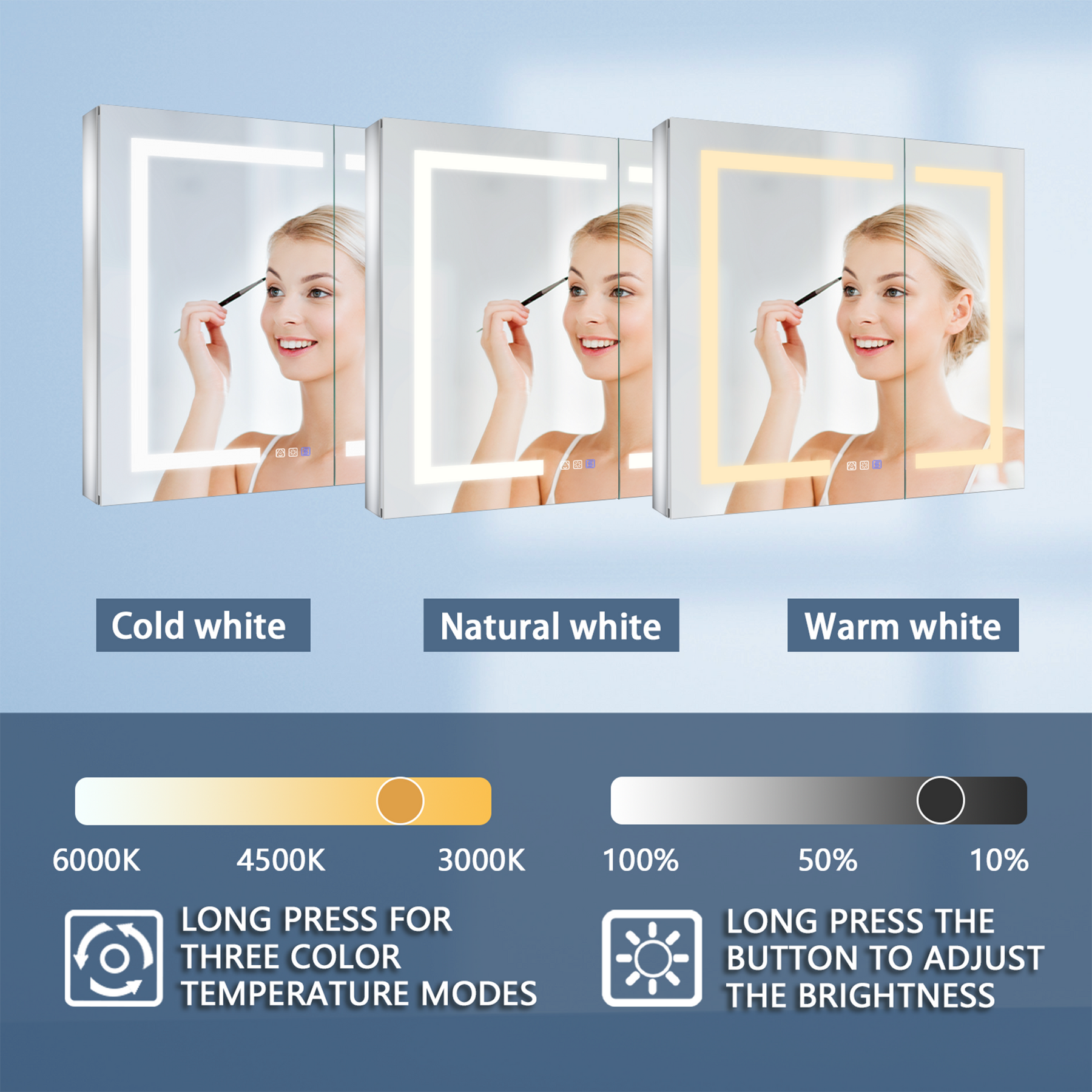 • Adjustable Lighting: Tailor your ambiance with adjustable brightness from 10% to 100% and color temperature (3000K to 6000K).