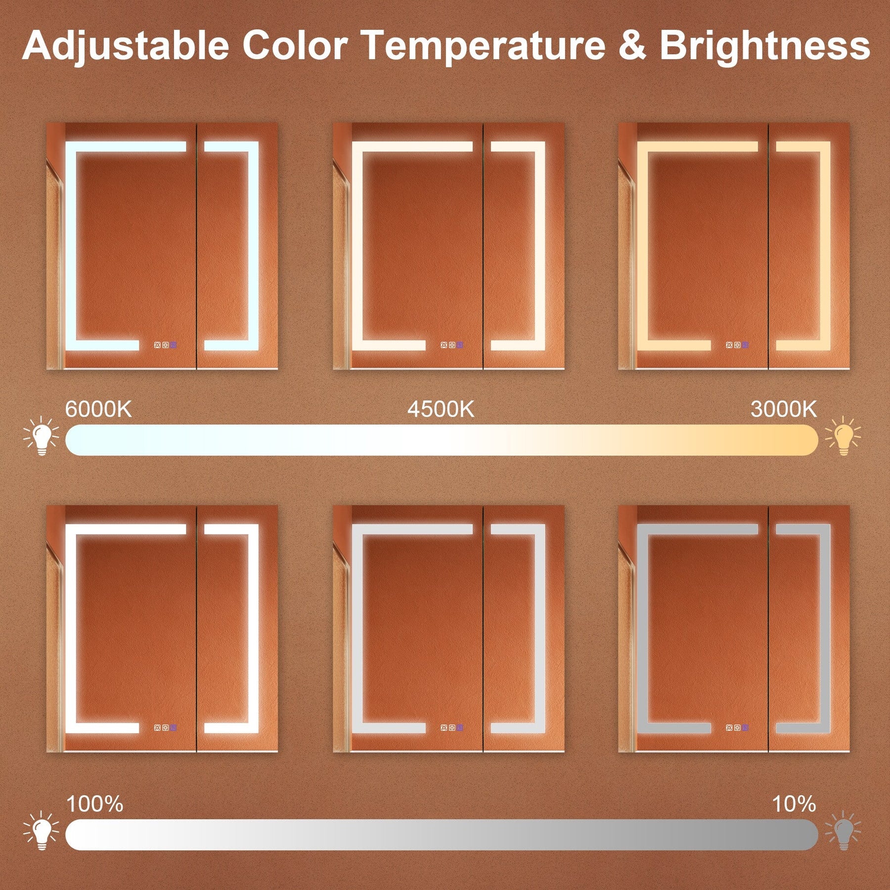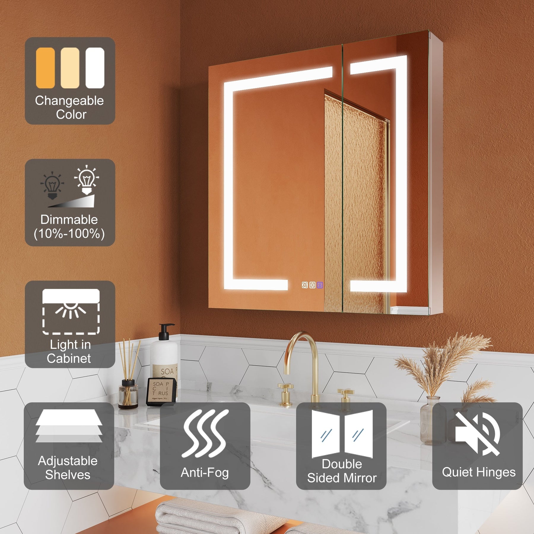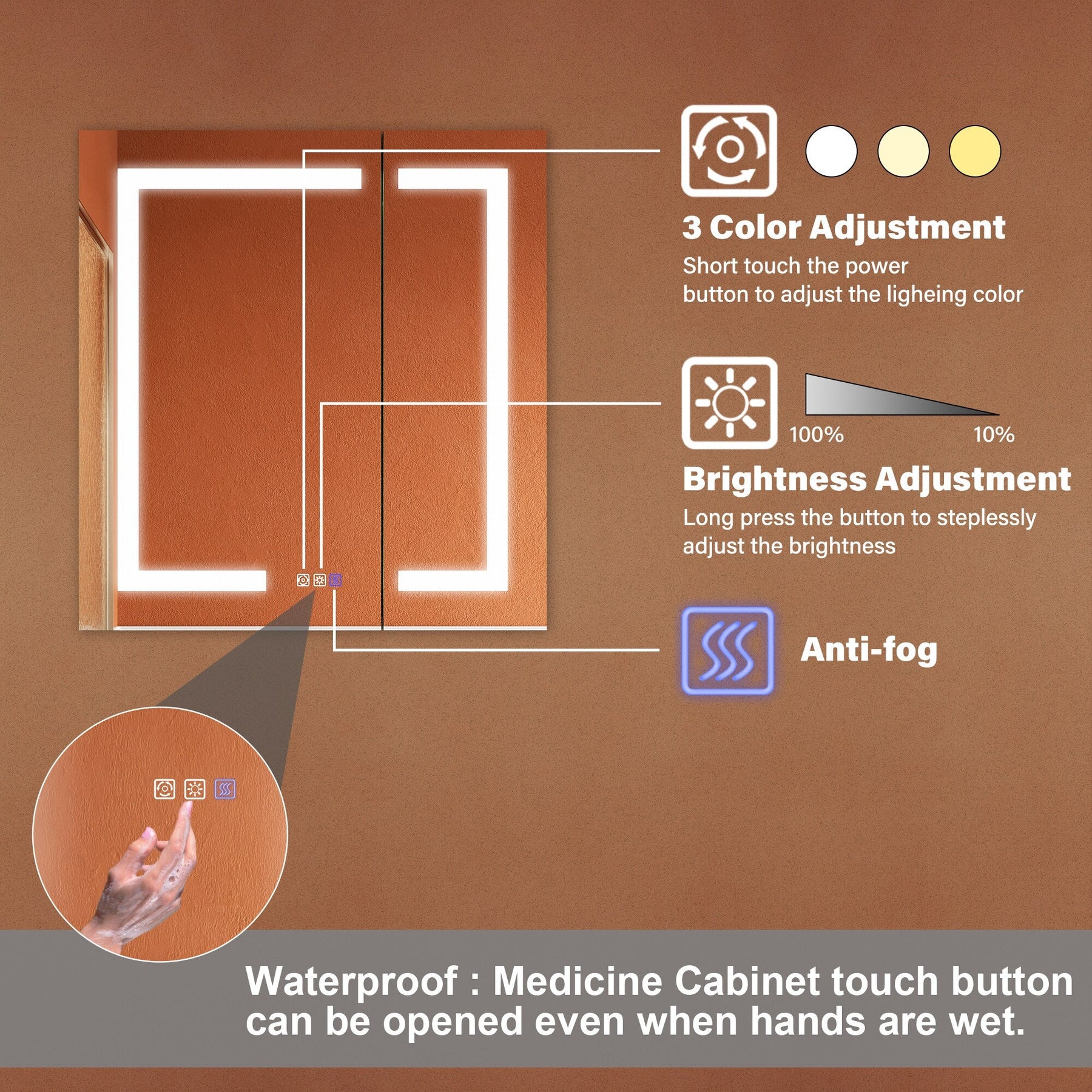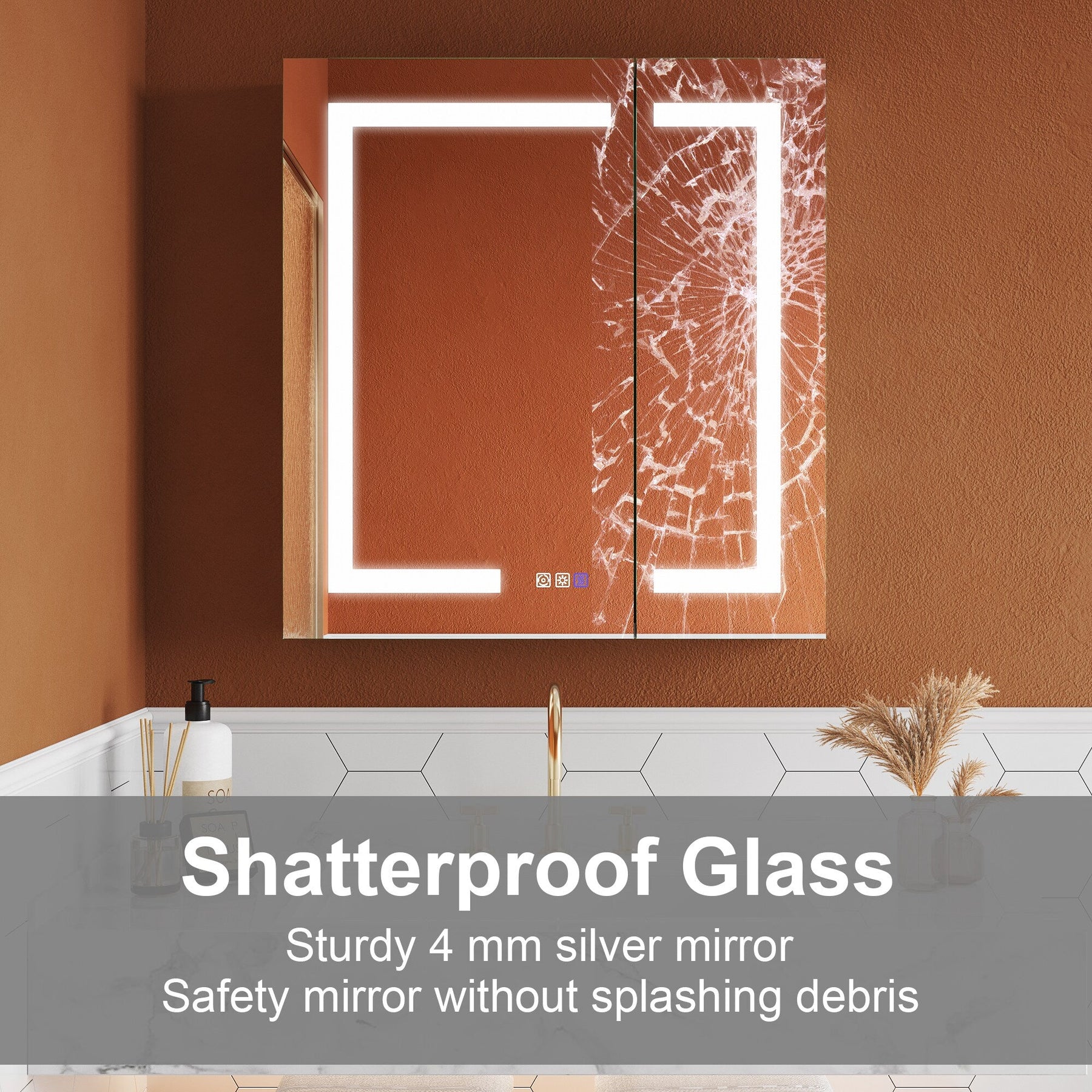 Enhance your bathroom with the ExBrite Opale 28x30 Mirrored Medicine Cabinet, featuring LED lighting and fog-free technology. Its sleek design offers ample storage with adjustable shelves and an energy-saving light system, making it a stylish and functional addition to your space.