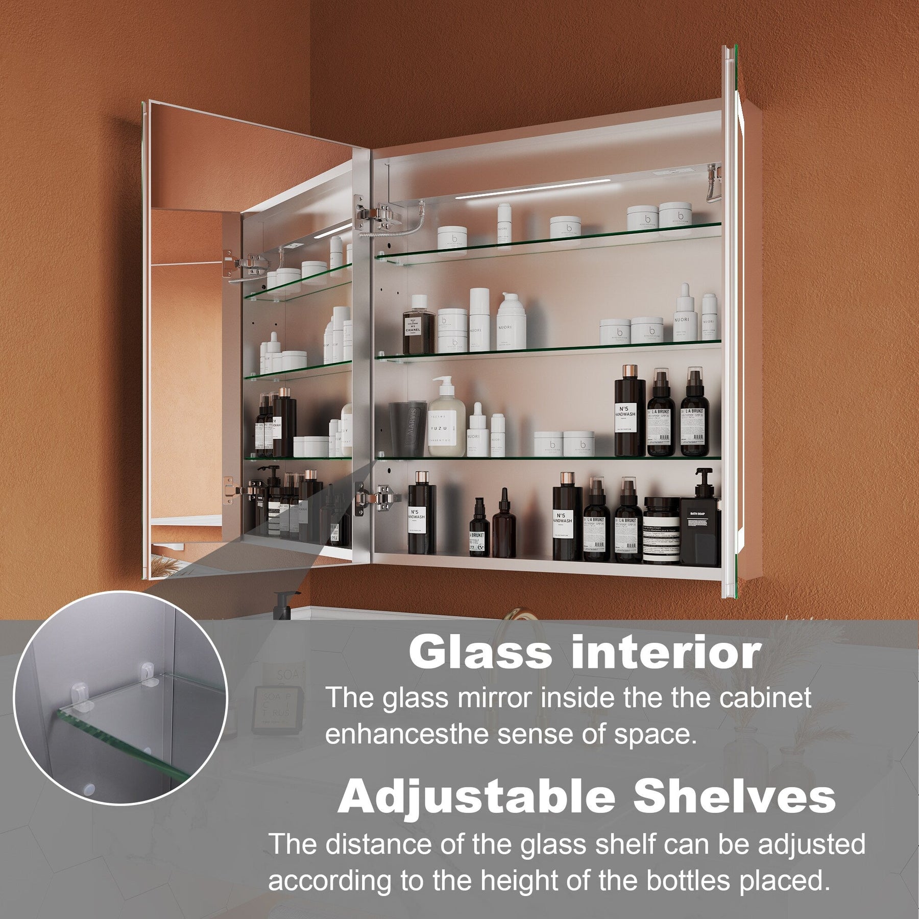 Ample Storage: Organize your bathroom essentials with spacious interior and adjustable shatterproof glass shelves.
