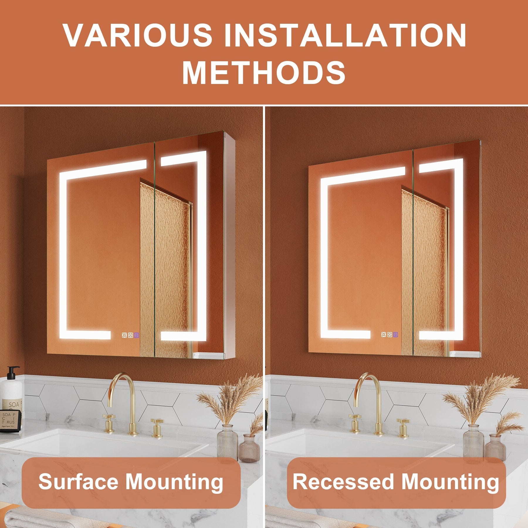 Q: Is the cabinet suitable for both surface and recessed mounting? A: Yes, this medicine cabinet can be installed either as a surface mount or recessed into the wall, offering flexible setup options.
