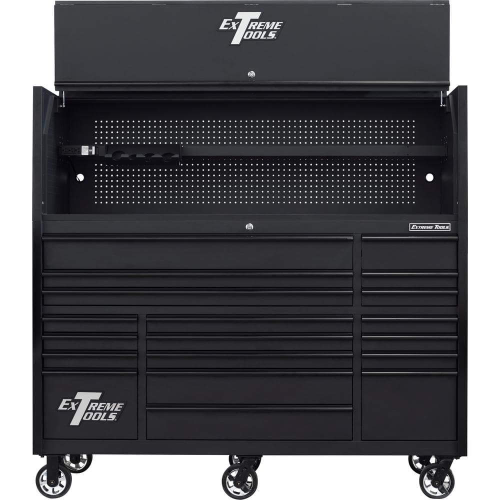 Extreme Tools RX Series Professional 72 in. W x 25 in. D Hutch 19-Drawer Roller Cabinet Combo in Matte Black with Black Drawer Pulls