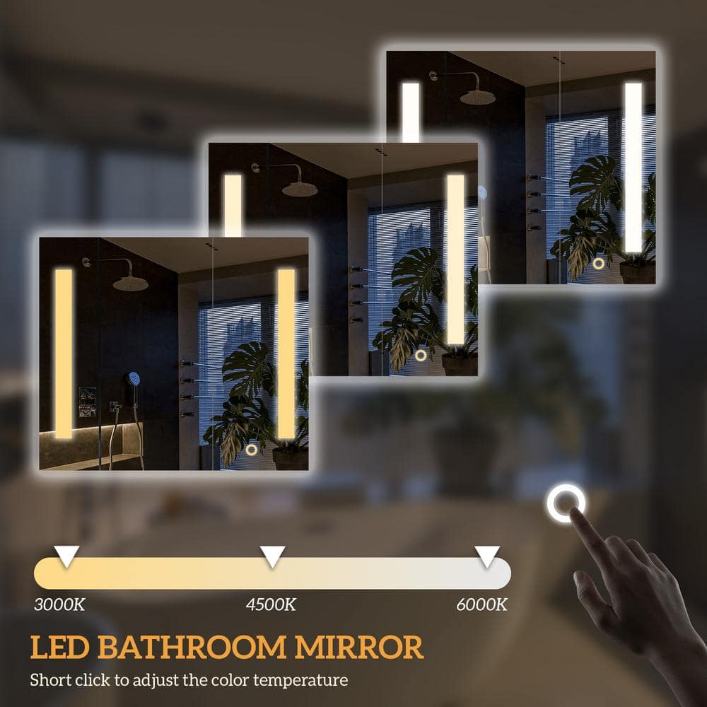 Adjustable Lighting: Features dimmable LED lights with three color temperatures (6500K, 4500K, 3000K) for optimal bathroom ambiance.