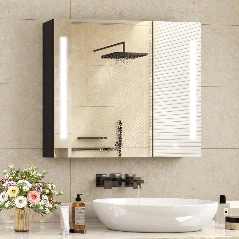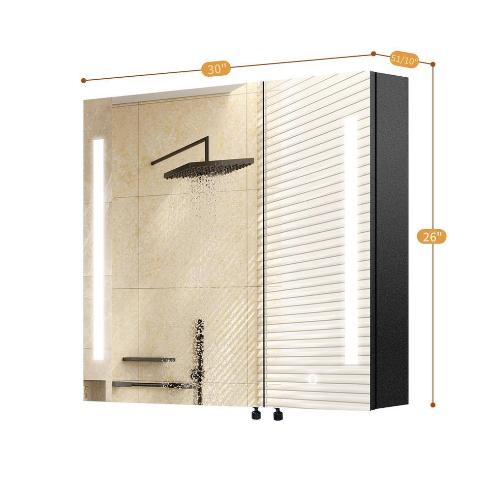 Elevate your bathroom with the FAMYYT Frameless Anti-Fog Dimmable LED Medicine Cabinet. This sleek and modern cabinet features a luxurious black powder-coated finish, adjustable lighting, and anti-fog technology for a flawless experience. Optimize storage space with its dual swing, soft-close doors, and durable construction that stands up to moisture and scratches.