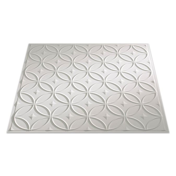 Transform your interior with Fasade's 2-ft x 2-ft Rings Matte White PVC Drop Ceiling Tiles, offering the timeless elegance of traditional tin ceilings without the hefty price tag. Ideal for both renovations and new constructions, these durable tiles are easy to install and resistant to water and corrosion, providing a maintenance-free solution for your spaces.