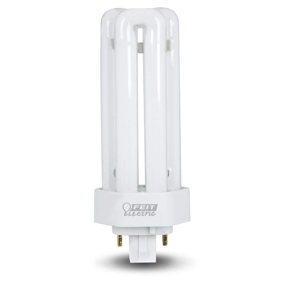 Plug-in 26-watt PL triple-tube CFL bulbs with GX24Q-3 4-pin base deliver soft white 2700K light for downlights and cans. Non-dimmable, plug-and-play with existing ballasts, rated up to 10,000 hours for reliable residential or commercial use.