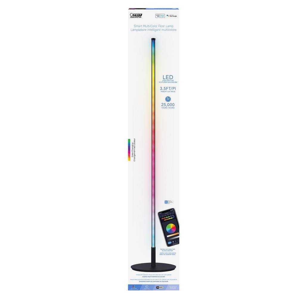 Elevate your home ambiance with the 42 in. Smart LED Color Changing Floor Lamp 4-Pack by Feit Electric. Featuring Wi-Fi connectivity and support for smart assistants, these sleek aluminum floor lamps offer customizable lighting with millions of colors and preset scenes to sync with your mood or music.