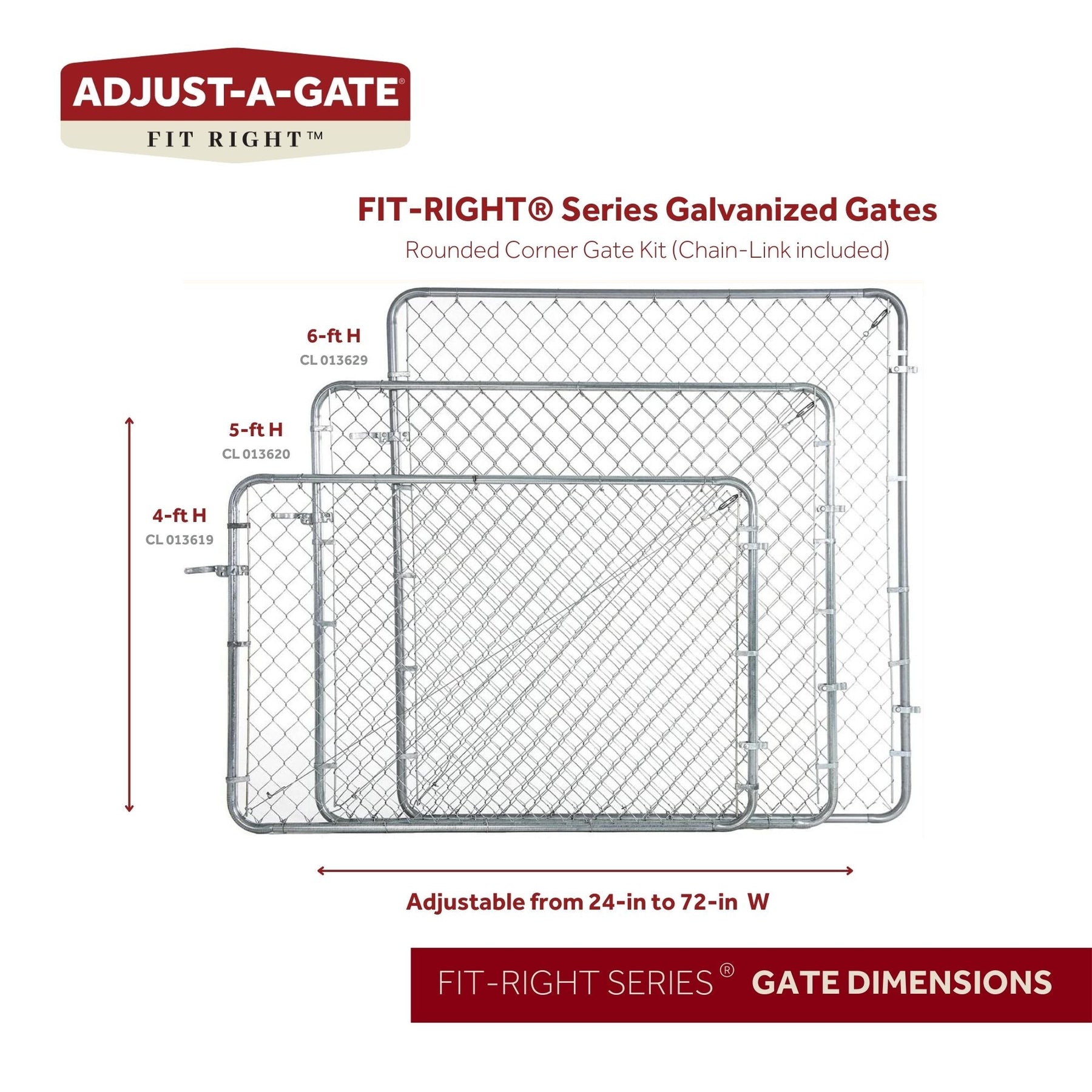 The Fit-Right Adjustable Chain Link Fence Gate Kit offers a robust solution for custom-sized gate openings, allowing you to tailor-fit spaces from 24 inches to 72 inches wide. With included anti-sag features and galvanized metal construction, this gate kit ensures lasting durability and easy installation for both DIY enthusiasts and professional contractors.