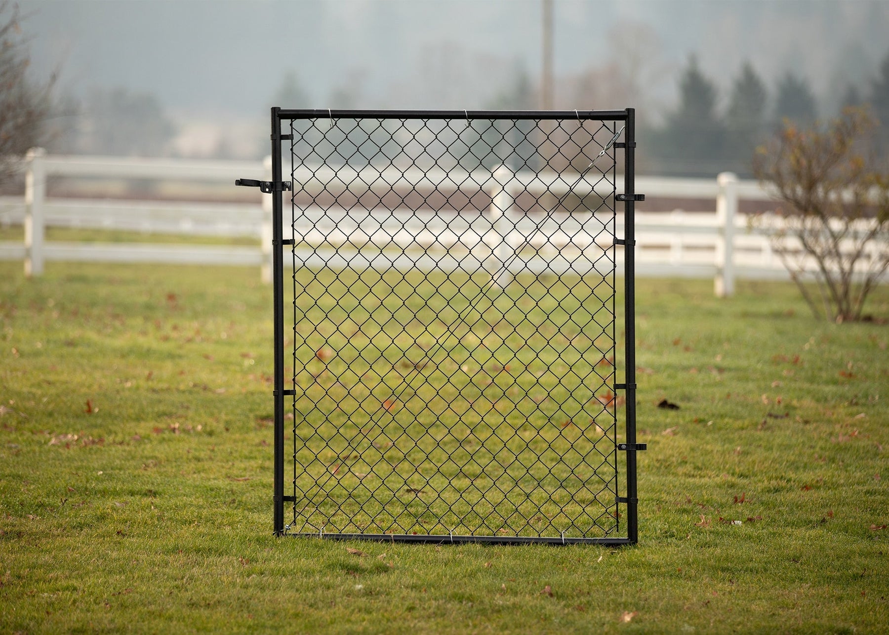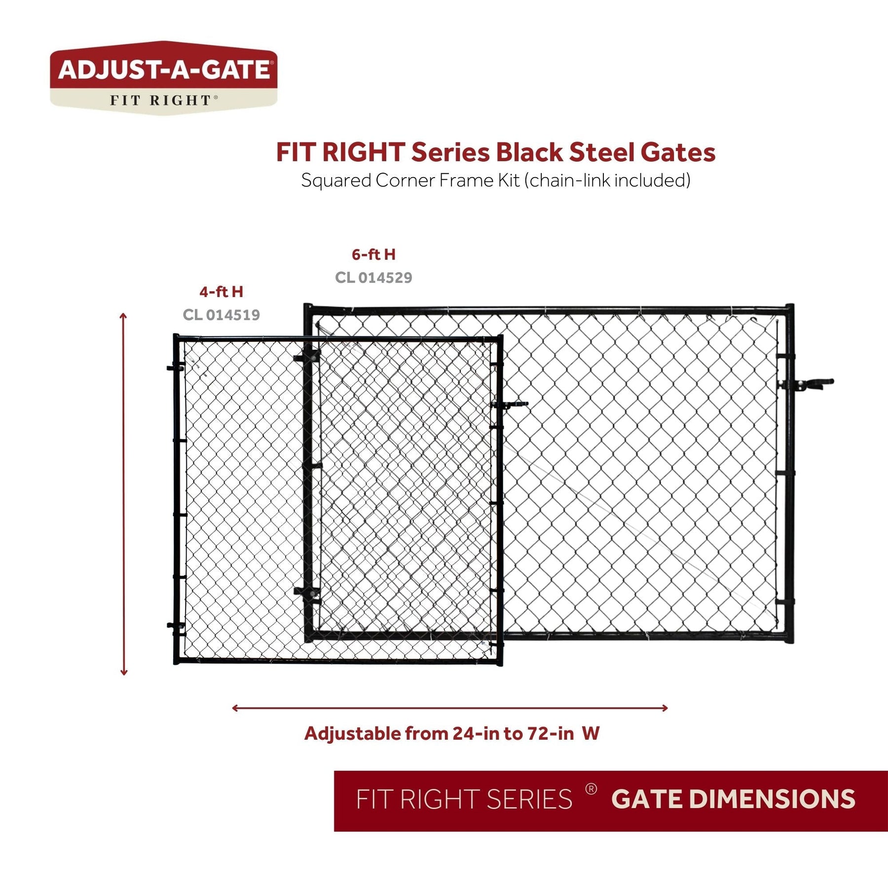 Fit-Right 6-ft H x 6-ft W Black Adjustable Metal Walk-thru Chain Link Fence Gate Kit with Mesh Size 2-in