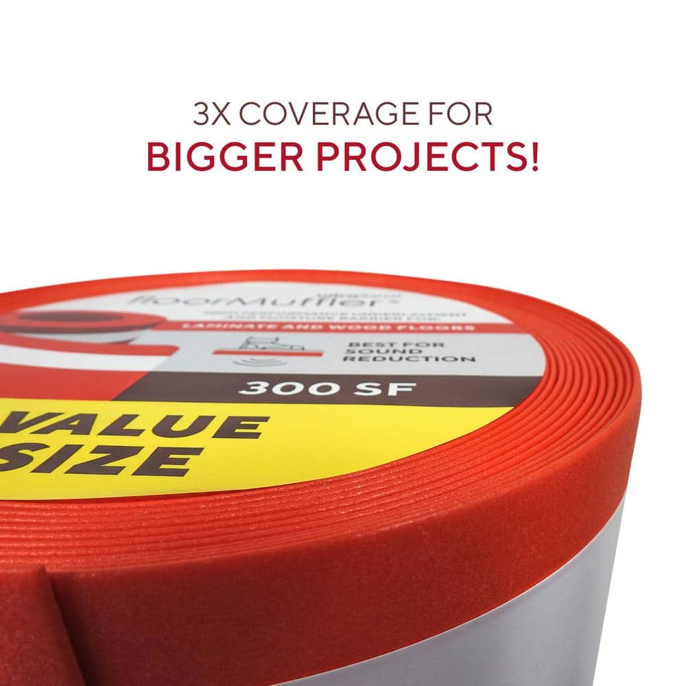 A: Each roll of FloorMuffler UltraSeal covers 300 square feet, making it ideal for larger spaces.