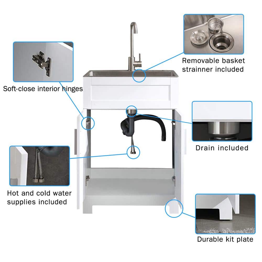 Q: What is the depth of the sink? A: The stainless-steel sink is 8.66 inches deep, providing ample room for utility tasks.
