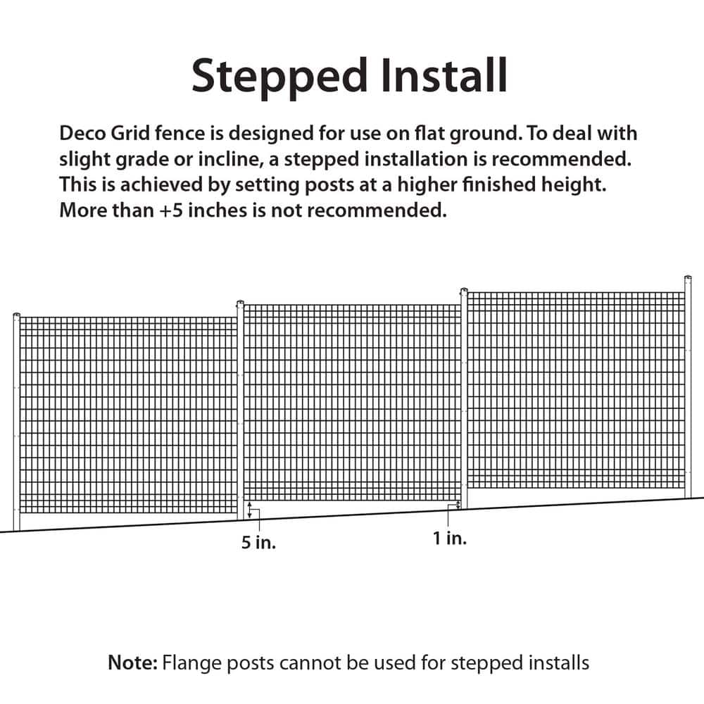 Q: How do I install these panels on different surfaces? A: For installations on wood or concrete, use the Deco Grid post with flange, which is sold separately.