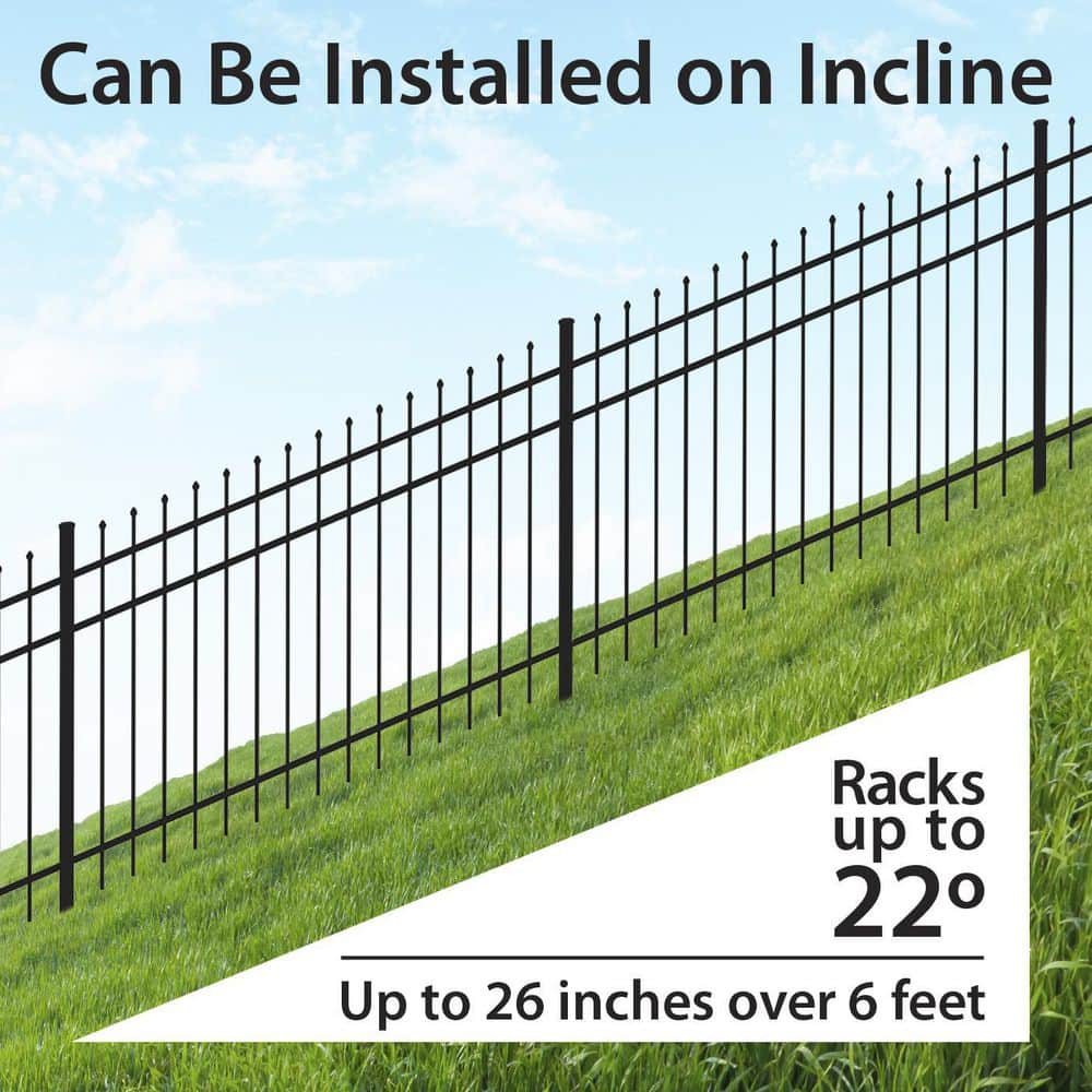 Enhance your property's security and style with the FORGERIGHT Osprey Black Aluminum Fence Panel. Crafted to resist rust and chipping, this 5-pack offers both aesthetic appeal and durability, with a classic wrought iron look that's easy to install, even on uneven terrain.