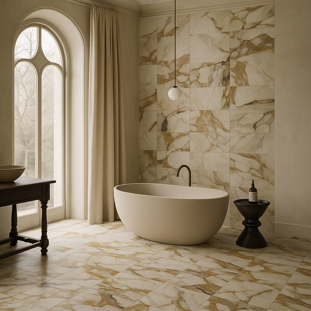 The Francesca Bianca Porcelain Tile offers a stunning stone-look design with a matte finish, perfect for enhancing any room. Made in Italy, this tile is waterproof, durable, and easy to maintain, making it ideal for both residential and light commercial spaces.