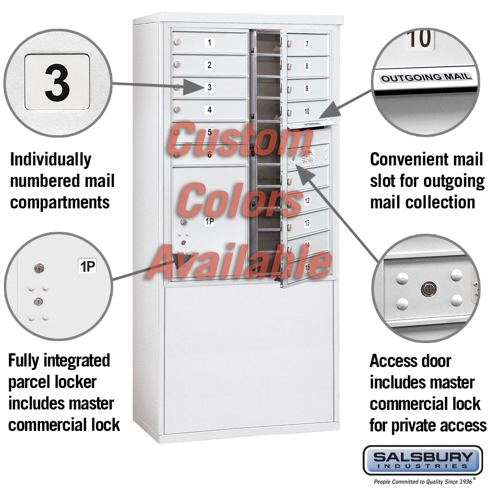Free-Standing 4C Horizontal Mailbox Unit with 15 MB1 Doors and 1 PL5 Parcel Locker