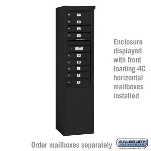 A: This enclosure is designed to mount Salsbury 3700 Series front loading 4C standard and custom horizontal mailboxes.