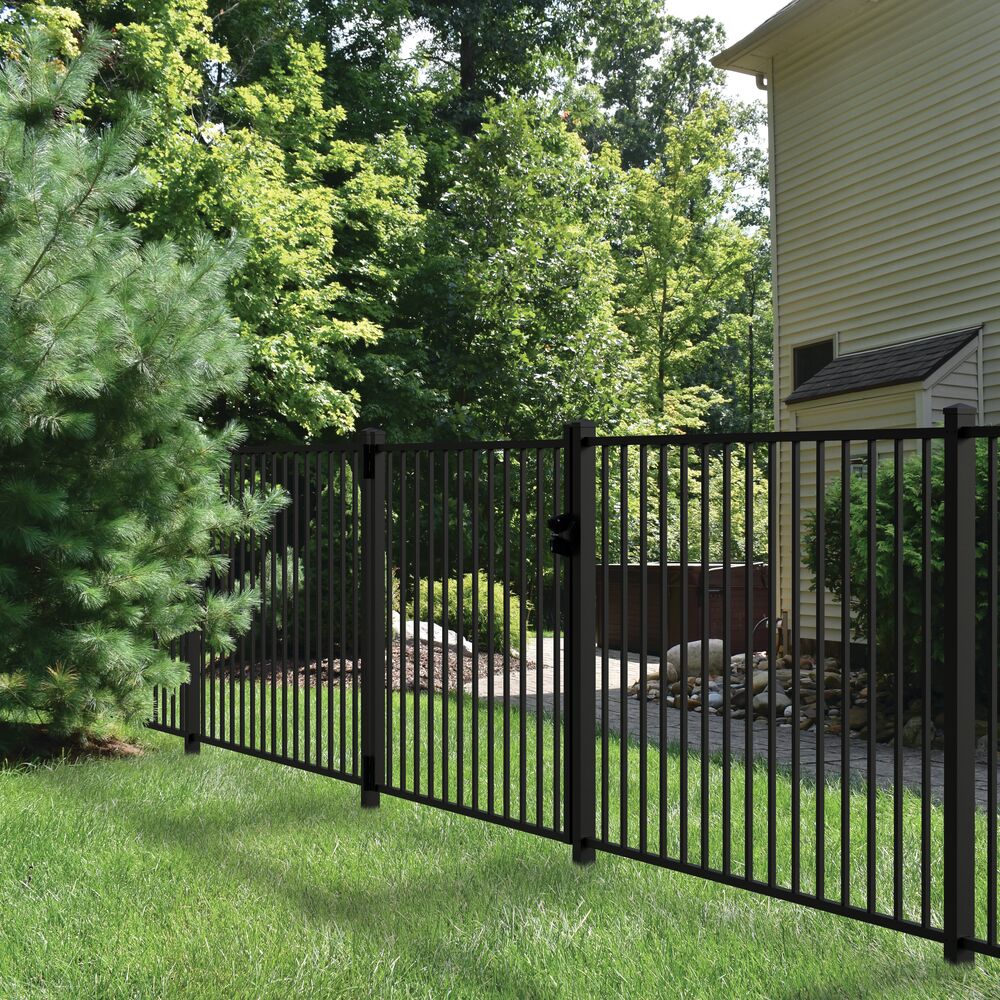 Enhance your outdoor space with the Freedom Easton 4-ft H x 3-ft W Black Aluminum Fence Gate, offering a blend of durability and style. This decorative walk-thru gate features a pre-welded construction and powder-coated finish for resistance against rust, fade, and corrosion, ensuring a lifetime of use. Perfect for both traditional and contemporary home exteriors.