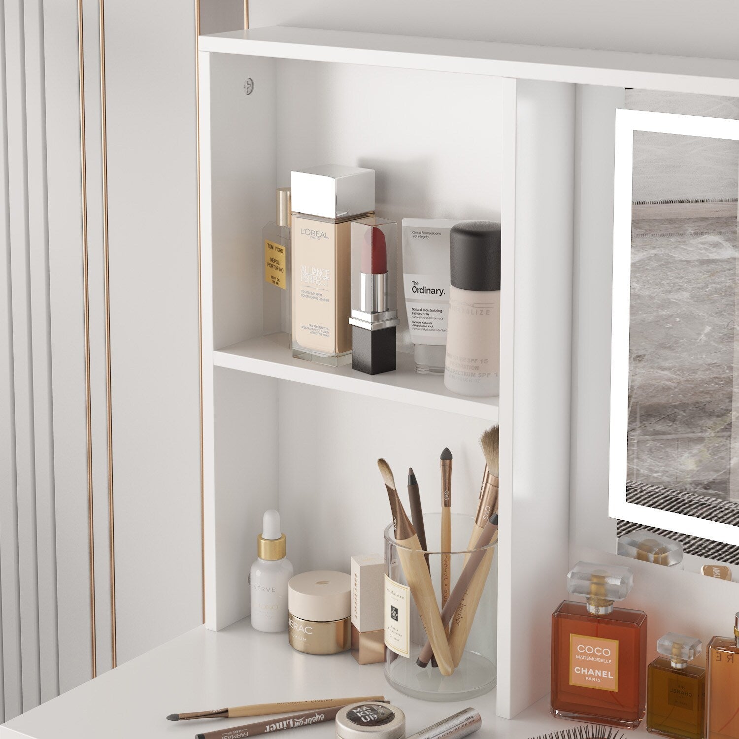 Contemporary Makeup Vanity with Sliding Mirror & Adjustable Lights