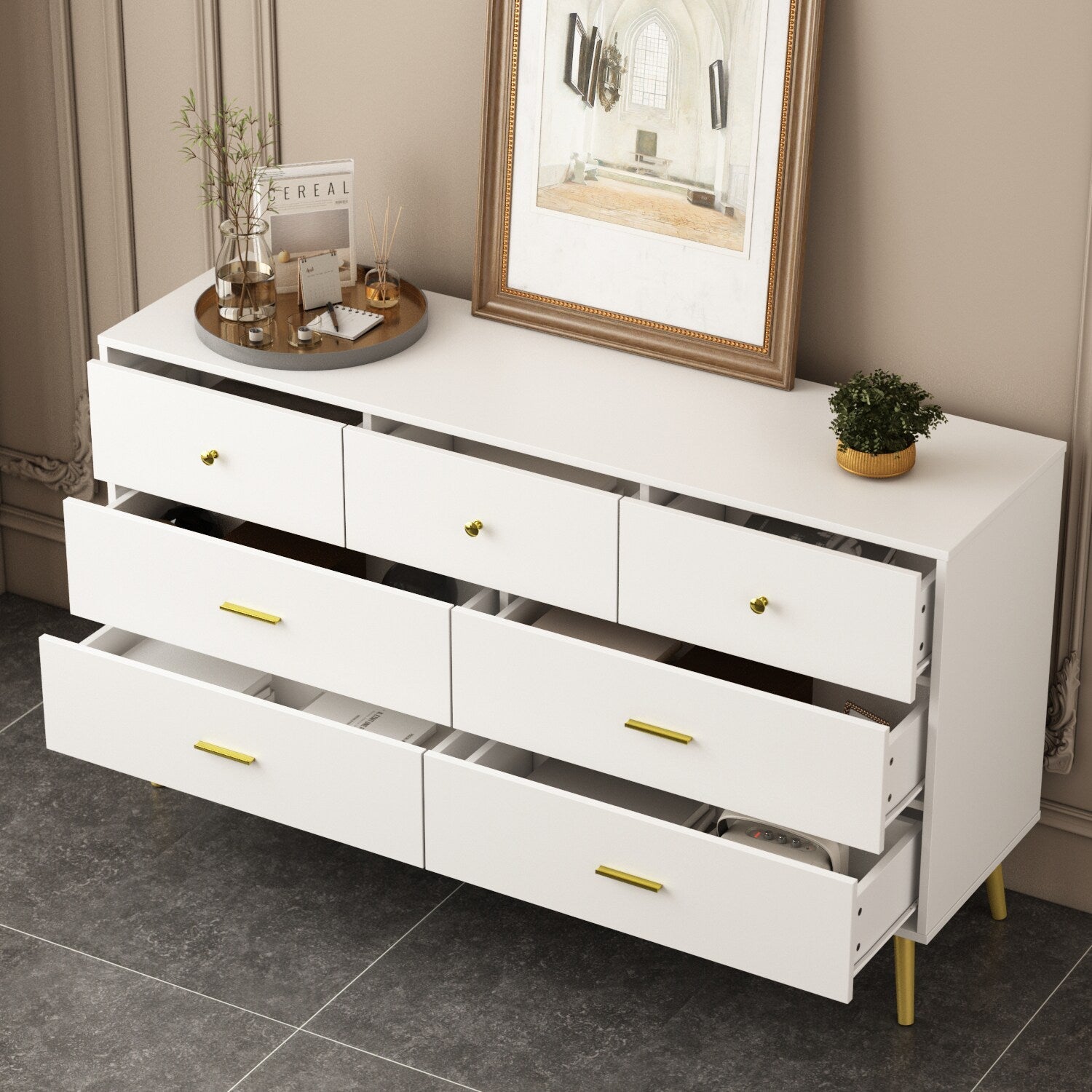 Elevate your interior with the FUFU&GAGA Contemporary White Sideboard, designed to provide stylish and versatile storage solutions. Featuring 7 ample drawers, this high-quality piece effortlessly combines functionality with sleek, modern aesthetics. Perfect for any room, this durable sideboard adds a touch of sophistication while meeting all your storage needs.
