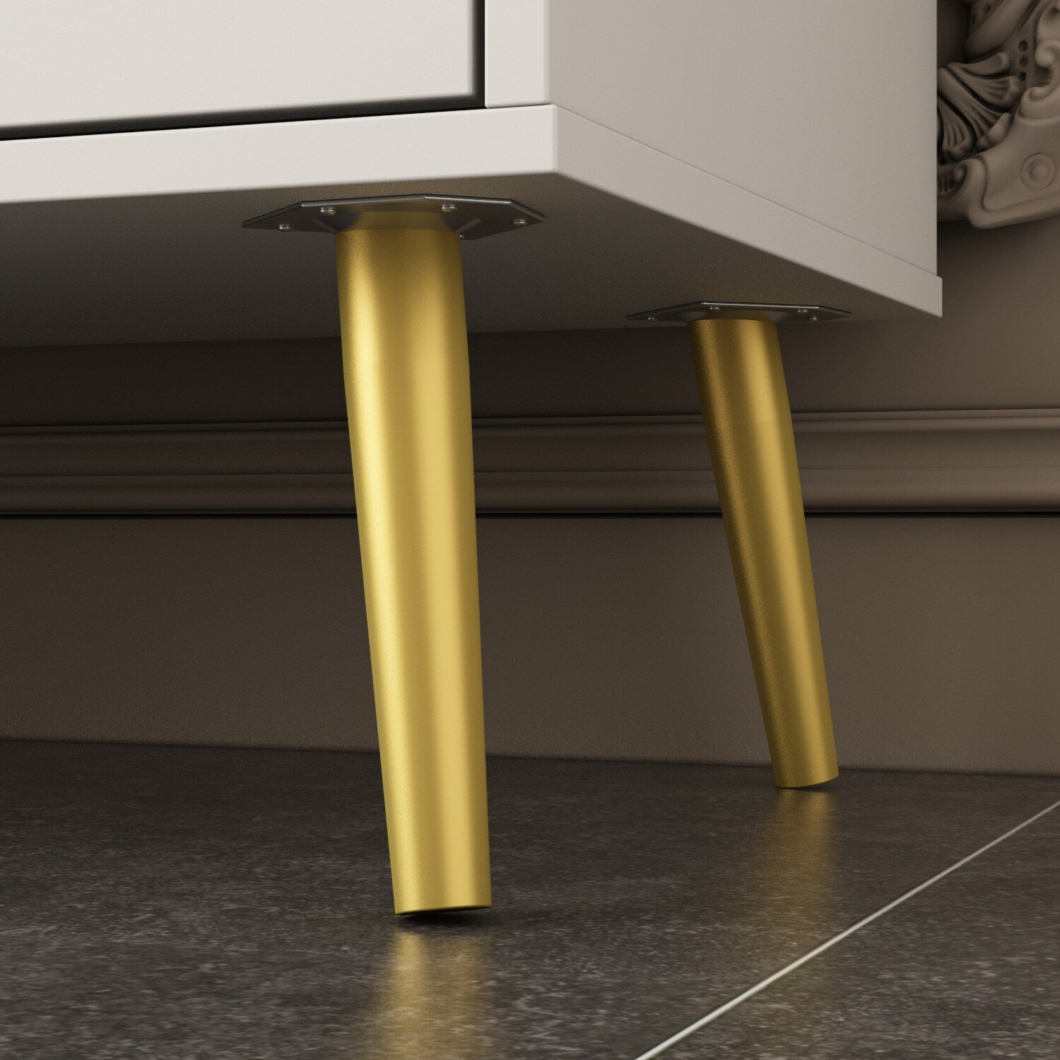 Transform your living area with the FUFU&GAGA Contemporary White Sideboard, a masterpiece of modern design that brings both utility and elegance in abundance. Its sleek, seamless white surface exudes sophistication, while the golden metal accents provide a luxurious contrast. Style it beneath a gallery wall for a curated, urban loft vibe or let it stand alone, showcasing its impeccable craftsmanship. This sideboard isn’t just furniture; it's the cornerstone of chic, functional, and luxurious interior living.