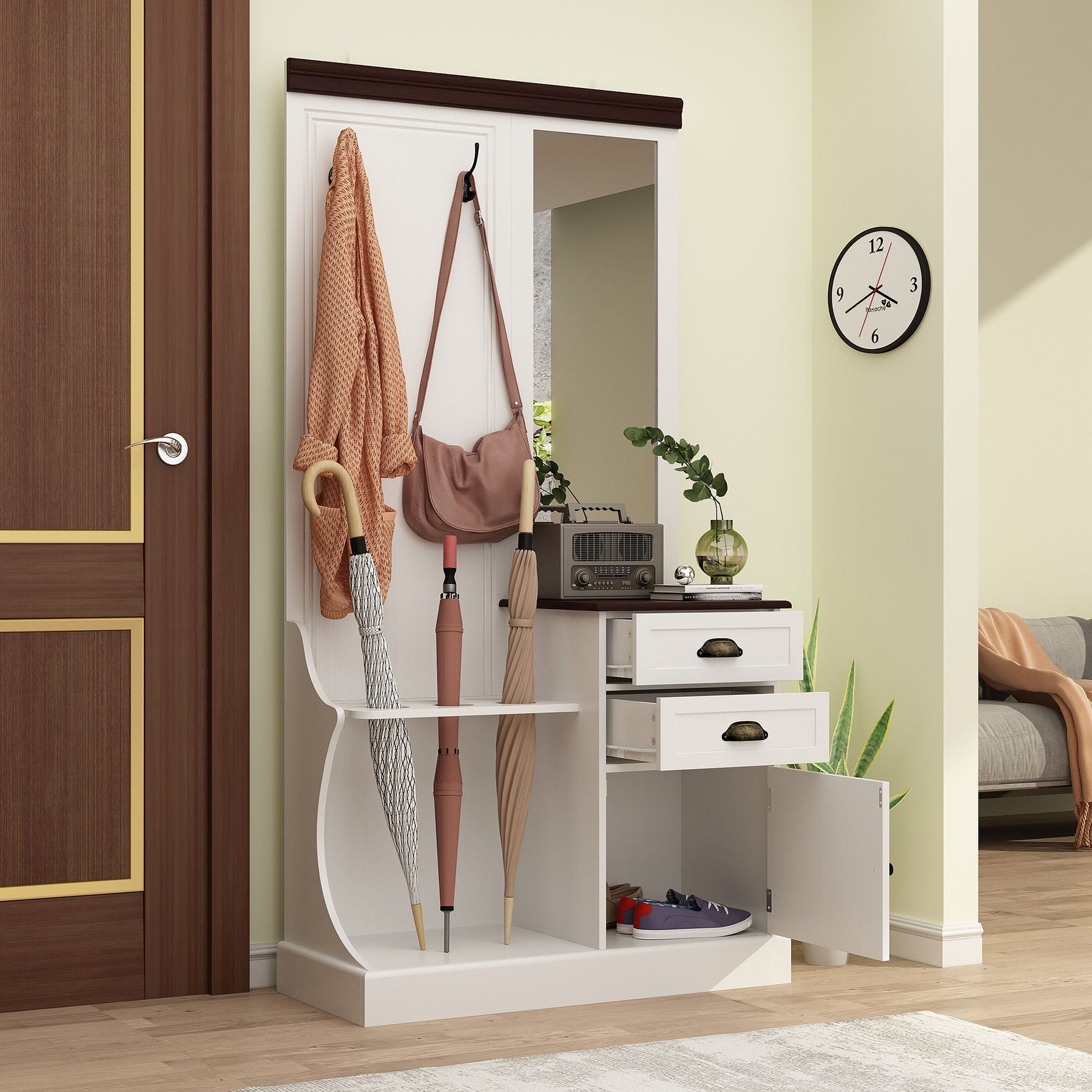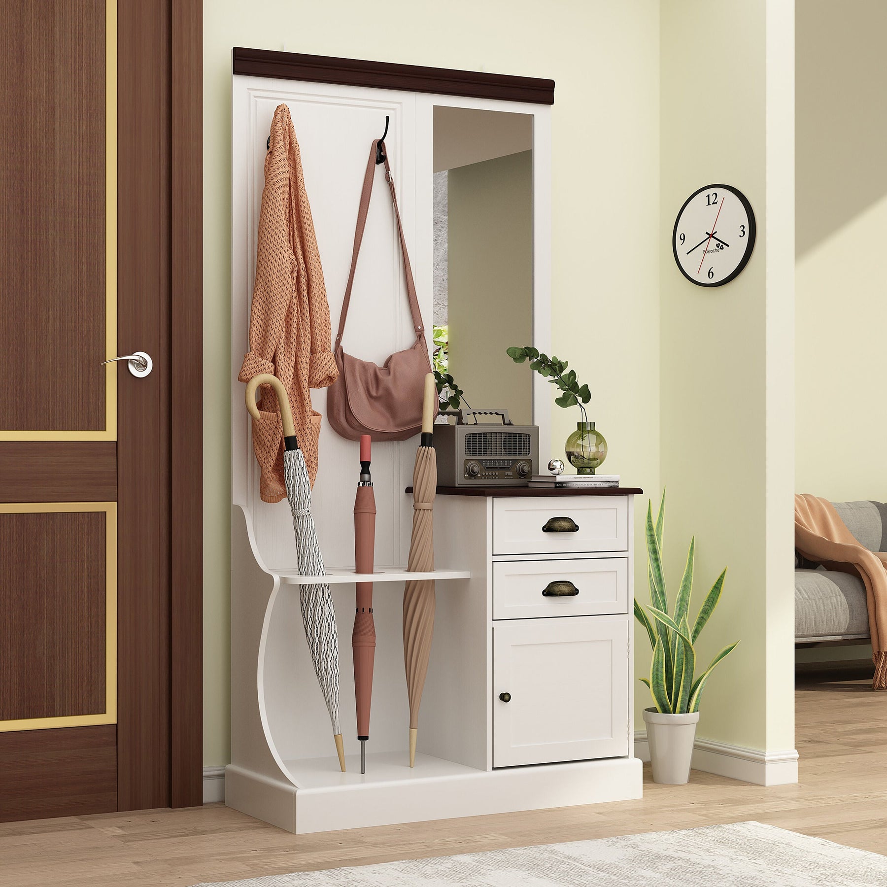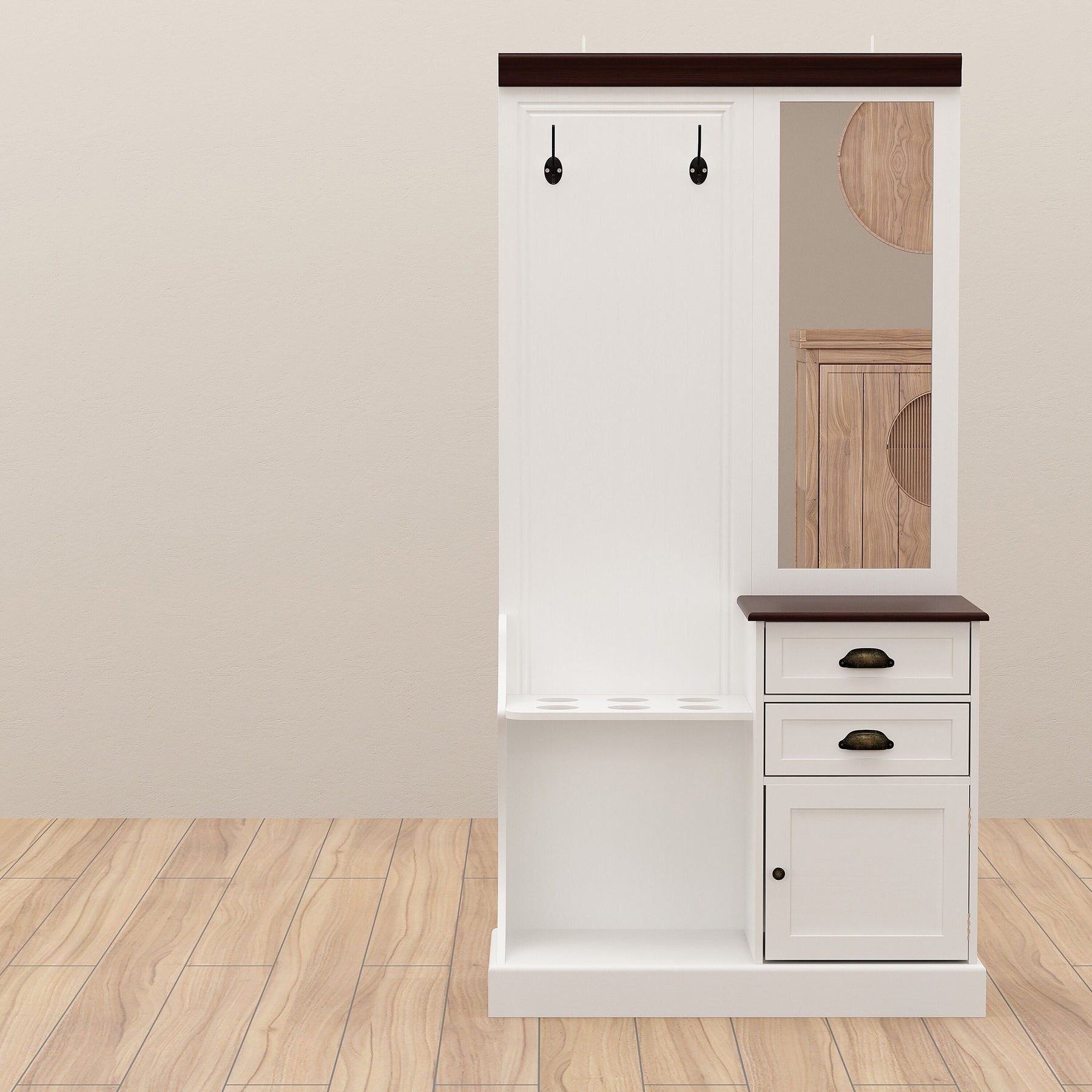 Integrated Storage: Combines hooks, shelves, and drawers for optimal organization.