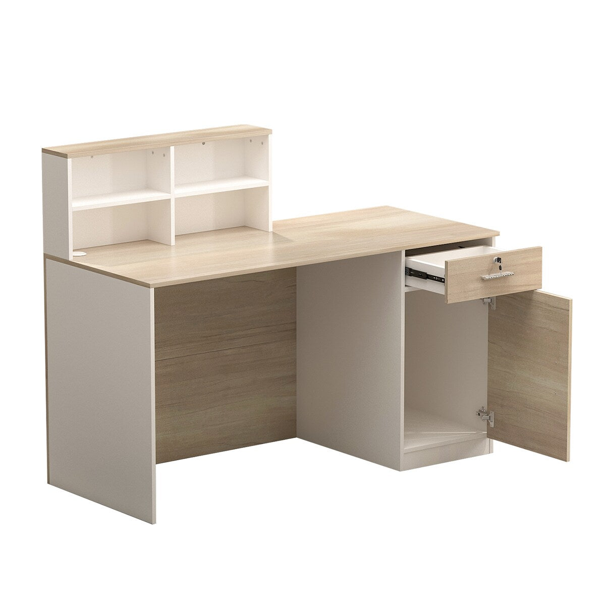 FUFU&GAGA Modern/Contemporary Off-White Reception Desk with Drawers, Shelves, and Lockable Cabinet