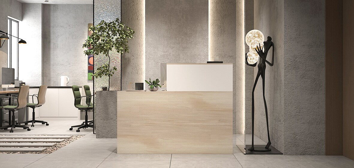 Elevate your workspace aesthetics and functionality with this modern reception desk—secure yours today for an organized, stylish environment.