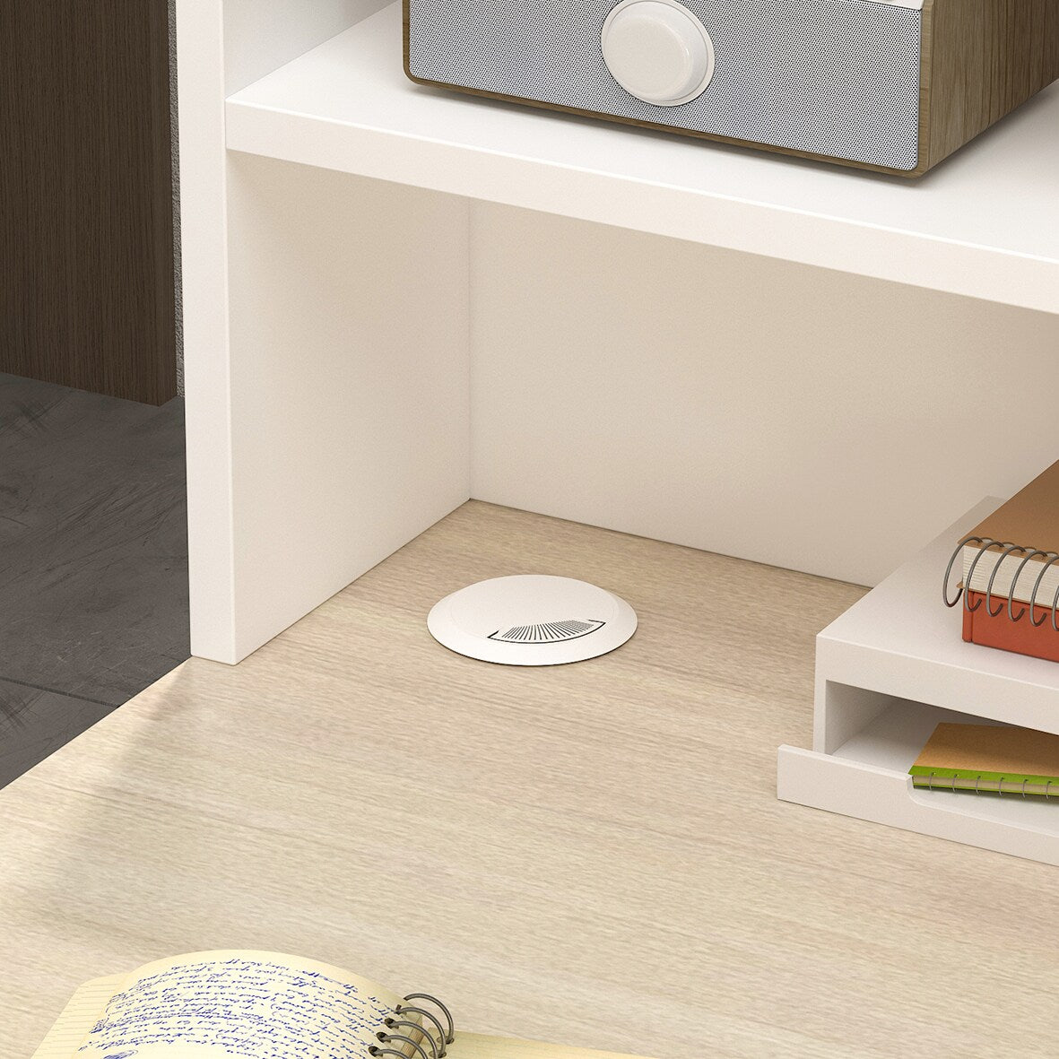 - Professional Finish: Modern off-white design with light oak accents for a contemporary look.