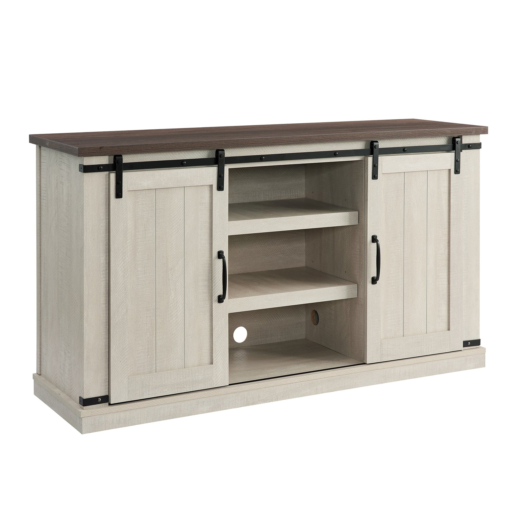 • Spacious Top: Supports TVs up to 60 inches with a stylish contrast of light gray and brown finish.