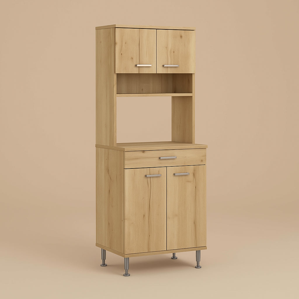 - Ample Storage Space: Includes spice racks, a wide shelf for appliances, and a drawer for easy access.