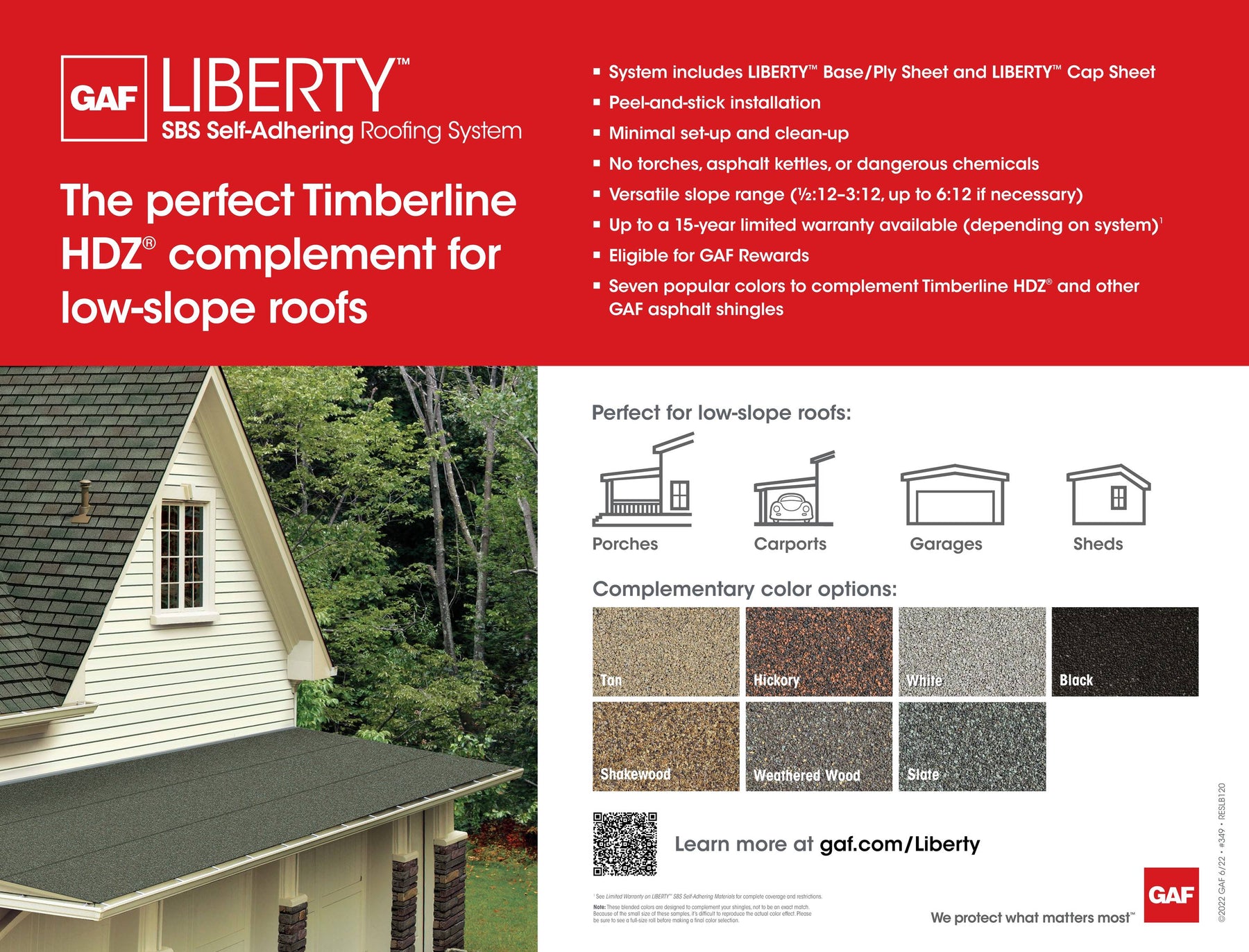 Upgrade your low‑slope roof with Liberty’s easy peel‑and‑stick protection—add to cart and finish the job fast.