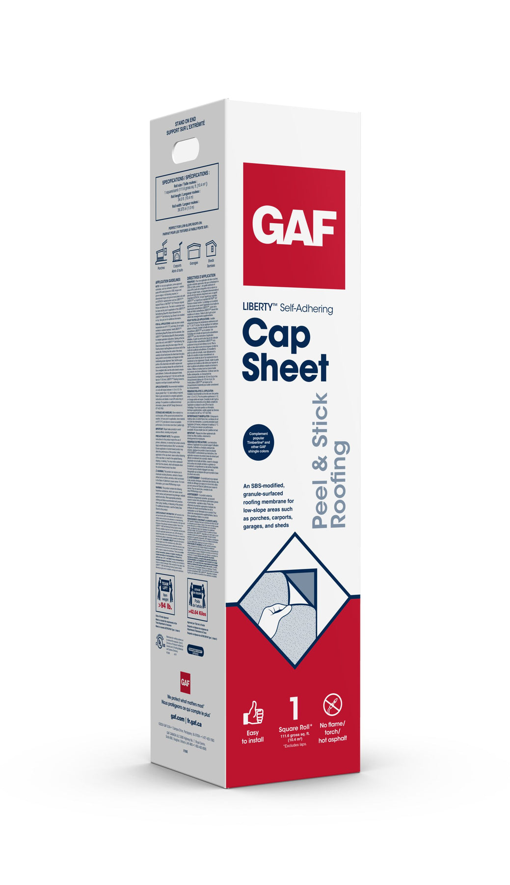 Q: Do I need a torch or hot asphalt to install it? A: No—this is a self‑adhering, peel-and-stick cap sheet that installs without flames or hot asphalt.