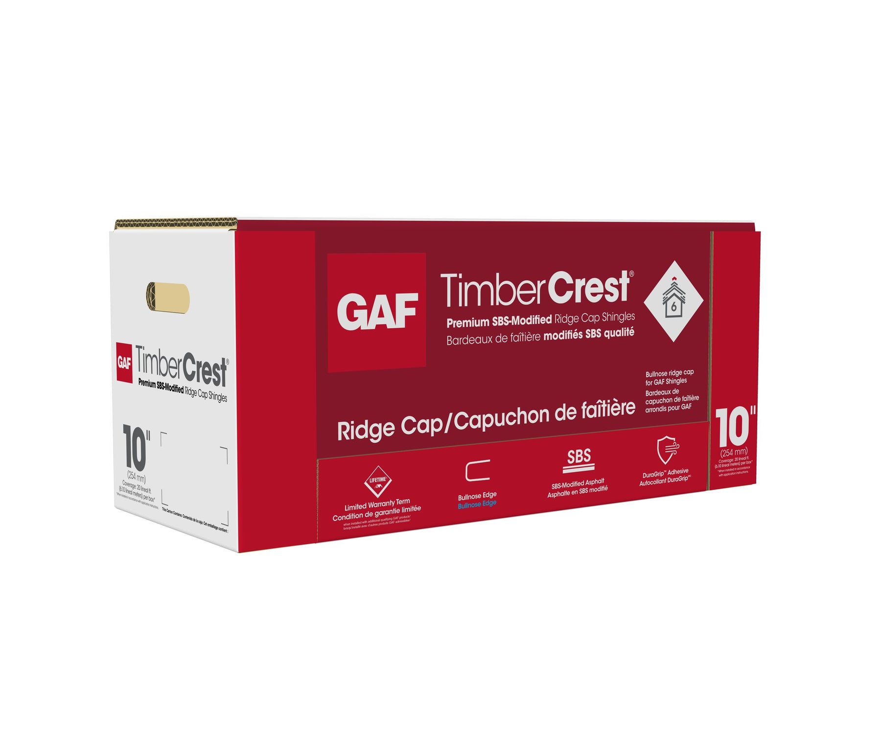 Finish your roof with GAF TimberCrest bullnose hip and ridge shingles featuring a high-profile rounded edge for a dramatic, dimensional look. SBS polymer‑modified asphalt and Dura Grip self‑seal adhesive deliver flexible installation and a tight seal at high‑stress roof areas. Each lightweight bundle covers 20 linear feet.