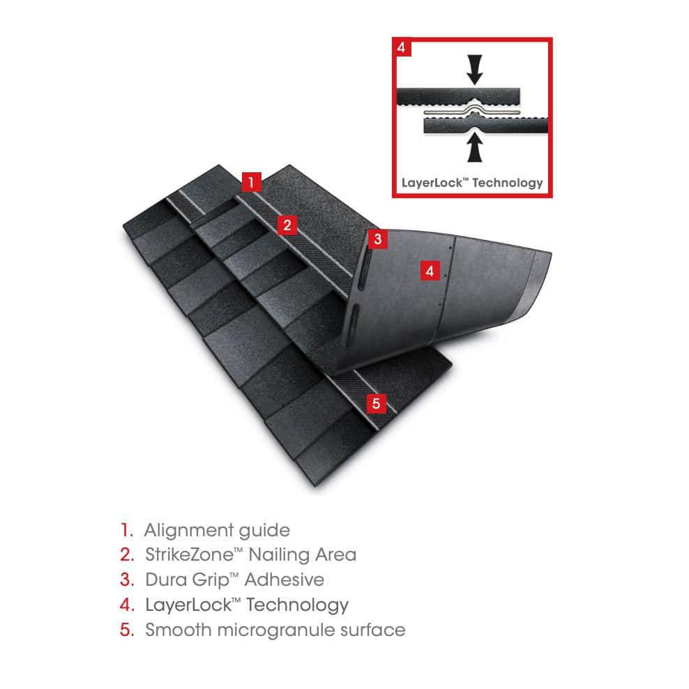 Features Algae Resistant,Dura Grip Adhesive,High Wind Resistant,Stainguard Protection,Waterproof