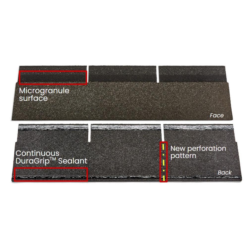Durable Adhesion: Dura Grip self-seal adhesive mitigates the risk of shingle blow-off.