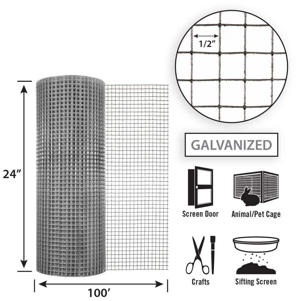 Galvanized Hardware Cloth 24 in. x 100 ft. - 1/2 in. Openings