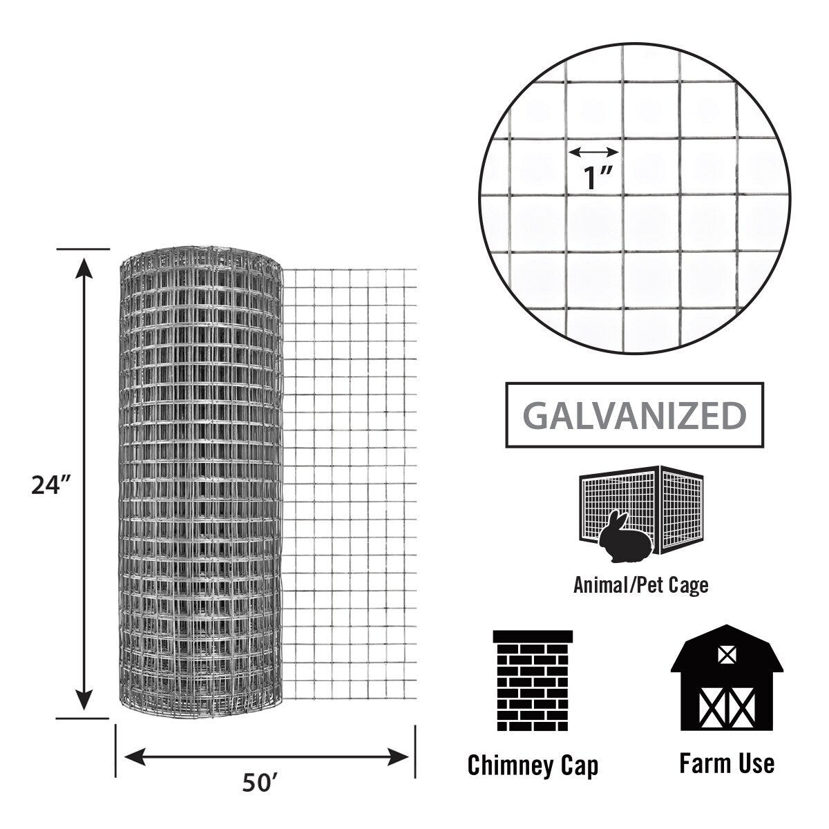 This durable 50-ft x 2-ft gray welded wire fencing is crafted from galvanized steel to provide lasting strength and resilience. Its 1-inch mesh openings make it versatile for various applications, from garden borders to plant protection, ensuring your outdoor or project spaces are both secure and functional.
