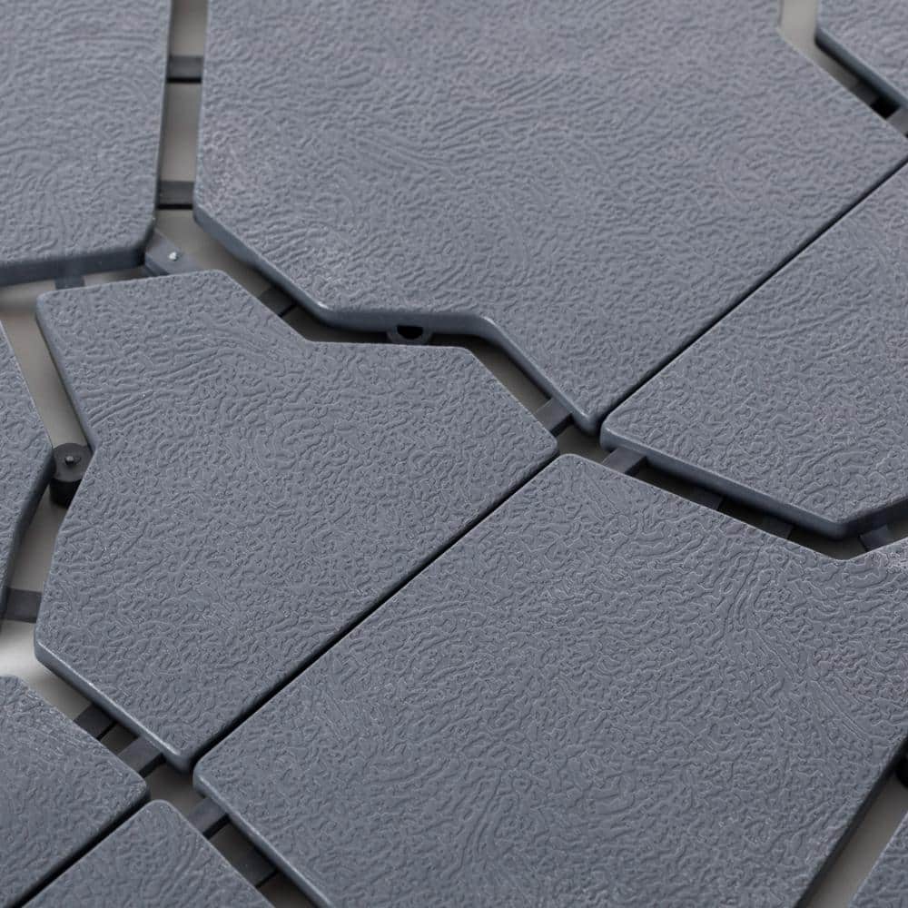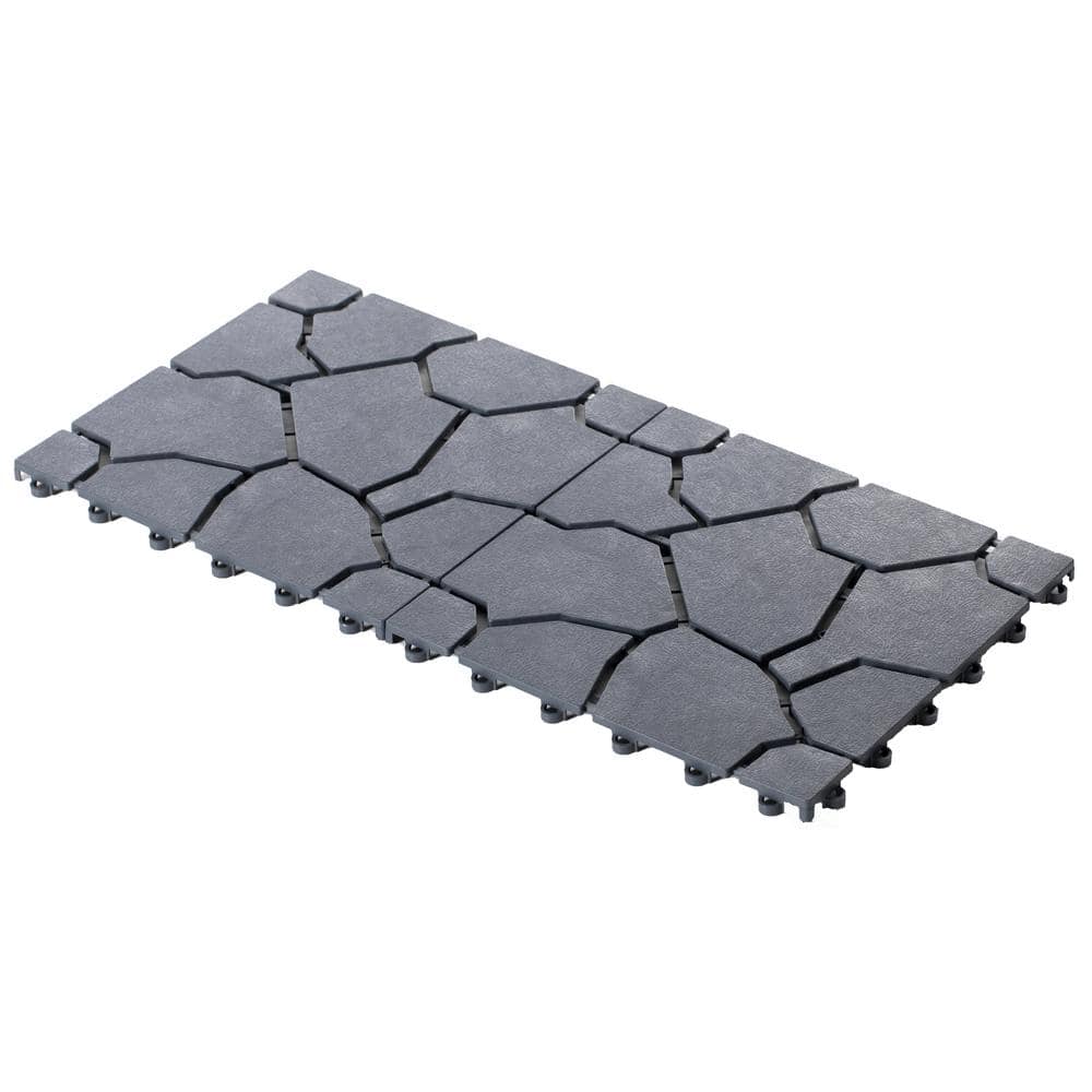 Gardenised Gray Plastic Garden Path Track Interlocking Stone Look Design Pathway Tile Floor Paver (Pack of 4)