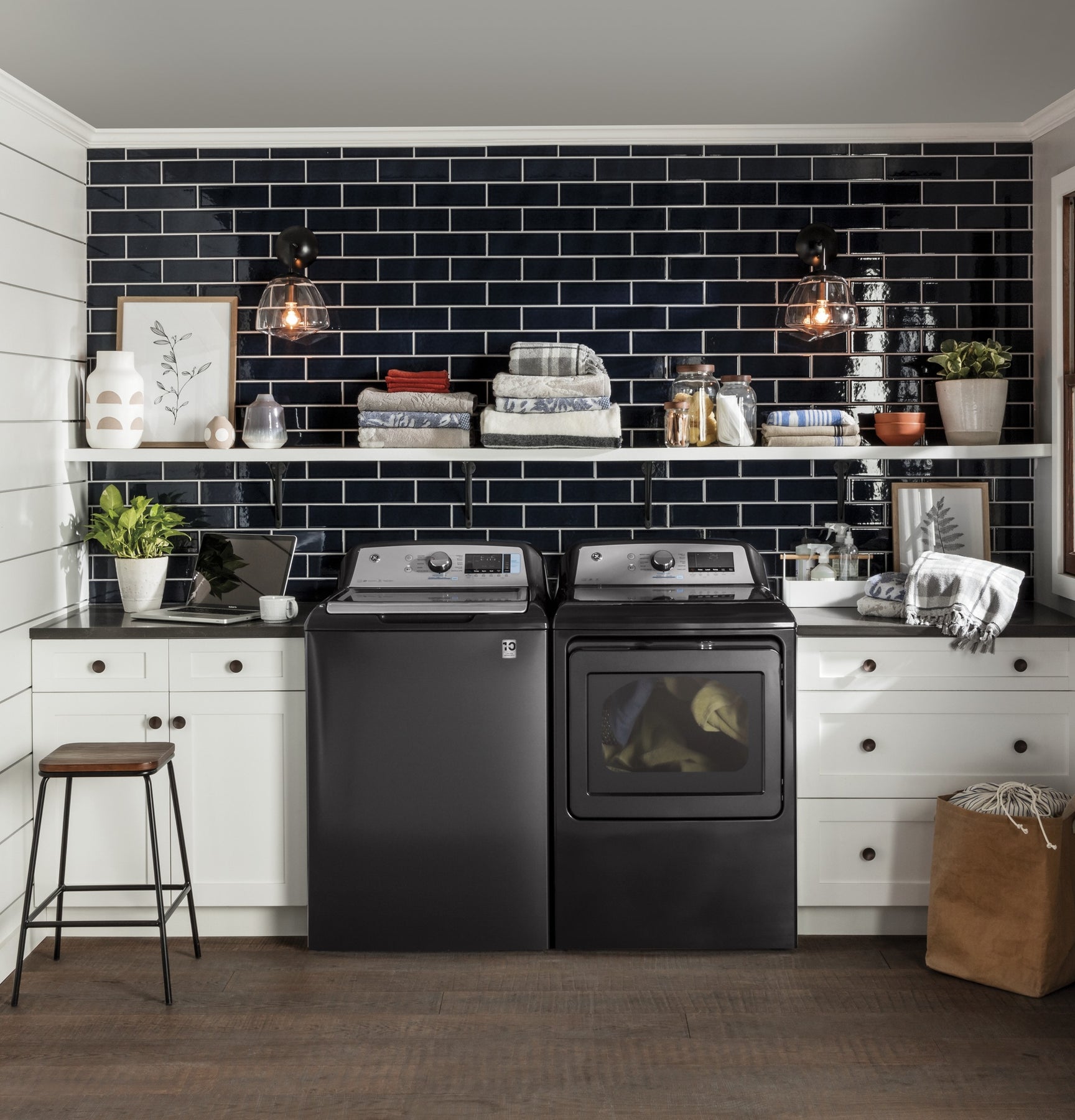 This 5.0-cu ft GE top-load washer in Diamond Gray delivers powerful, efficient cleaning with an agitator and ENERGY STAR certification. Built-in WiFi, SmartDispense detergent storage, and a Water Station for pretreating make laundry simpler and smarter.