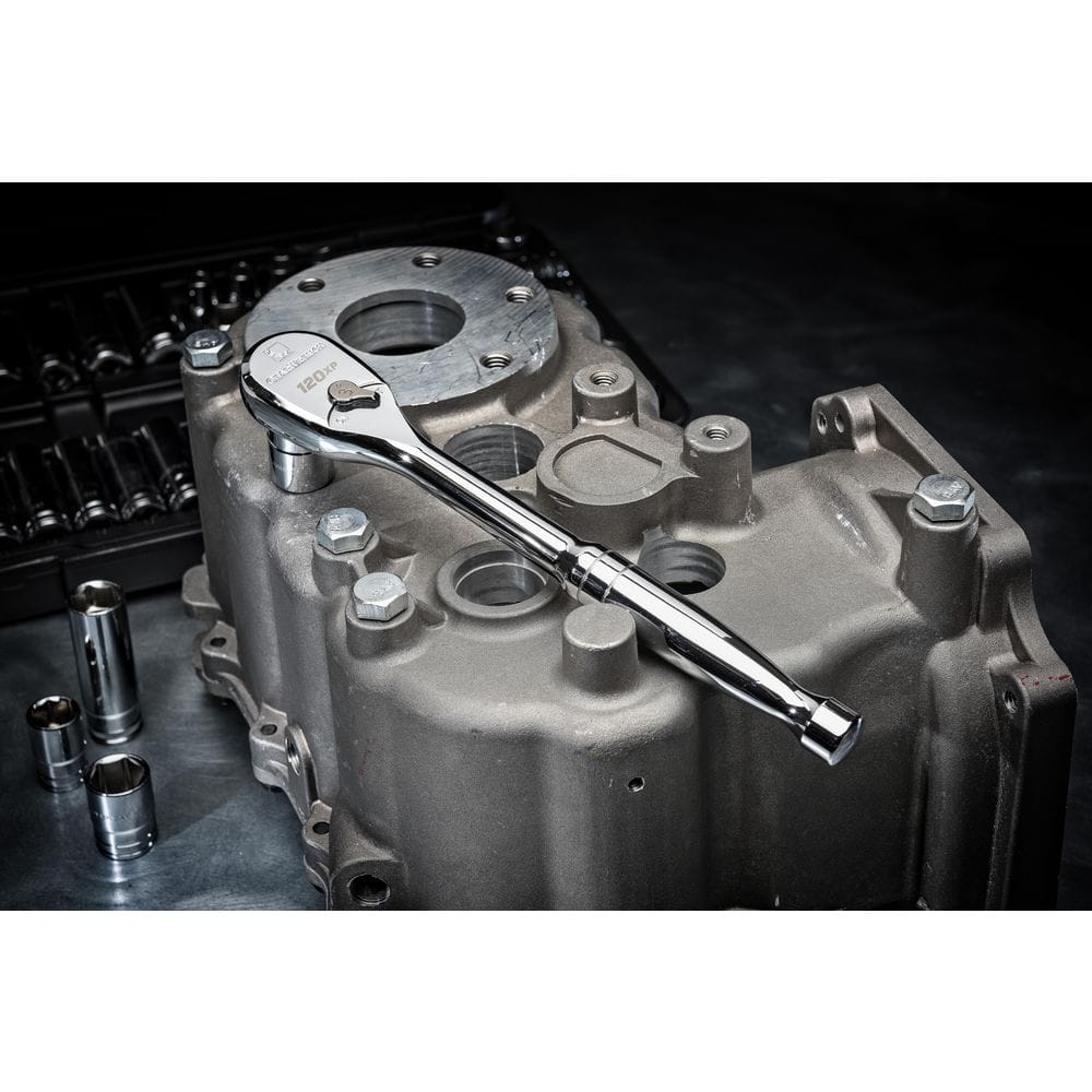Q: What sets the 120XP ratchets apart from standard ones? A: The 120XP ratchets feature a patented mechanism allowing them to operate with only a 3° swing arc, providing higher precision in confined spaces compared to standard 72-tooth ratchets.