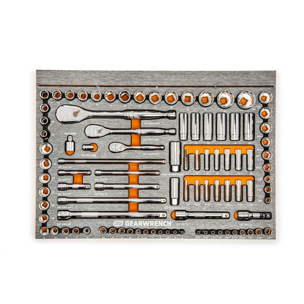 Envision your workshop elevated to a realm of organized precision and mechanical bliss! This GEARWRENCH tool set not only enhances functionality with its sophisticated, polished chrome sockets but enriches the aesthetic appeal of your workspace with its elegant foam storage. Each tool snugly fits into its designated space, creating a visual symphony of power and efficiency. Integrate it seamlessly into your garage or workspace, knowing that this set is not just a collection of tools, but a testament to superior design and utility. Cherish the blend of style and substance as a cornerstone of modern, inspired mechanical living.