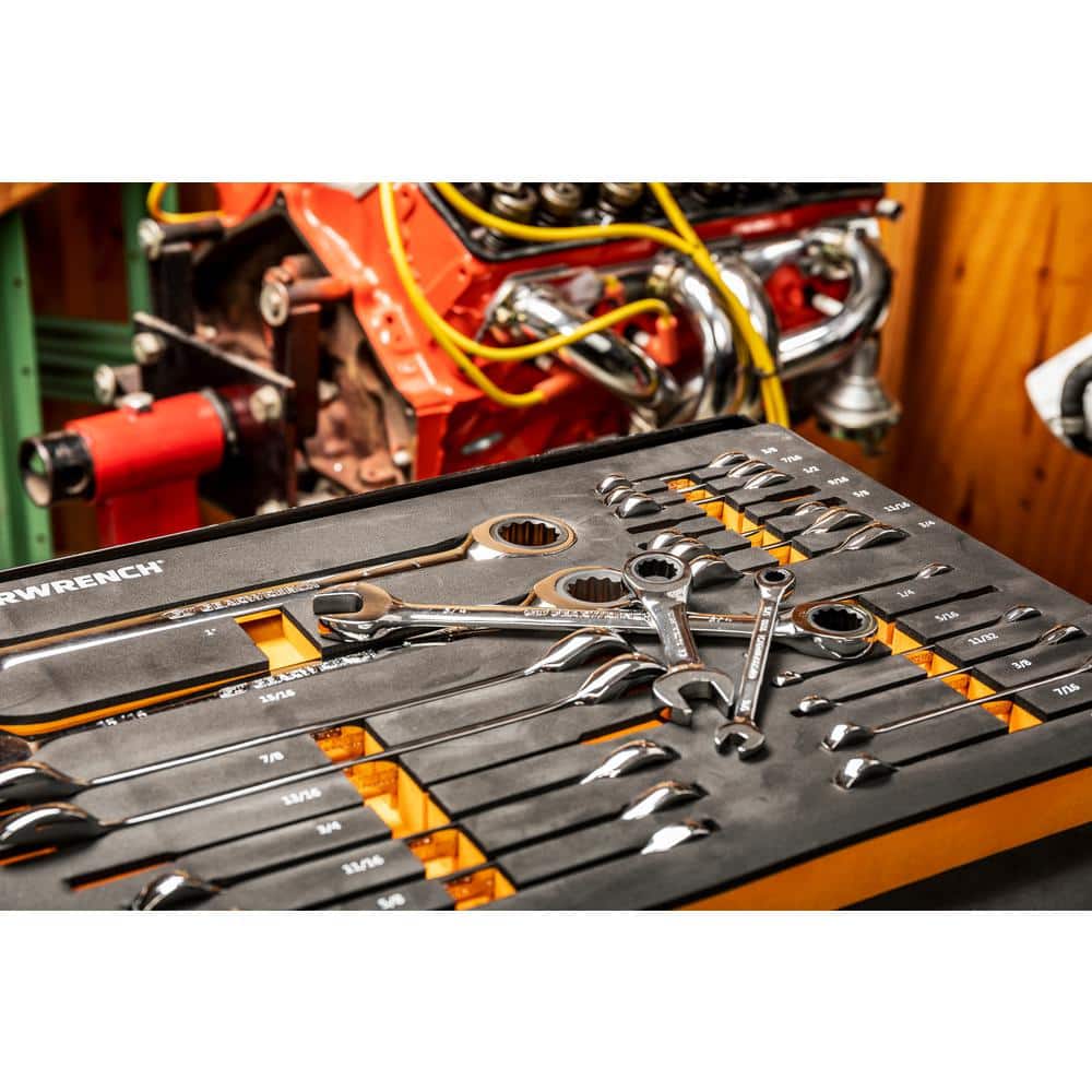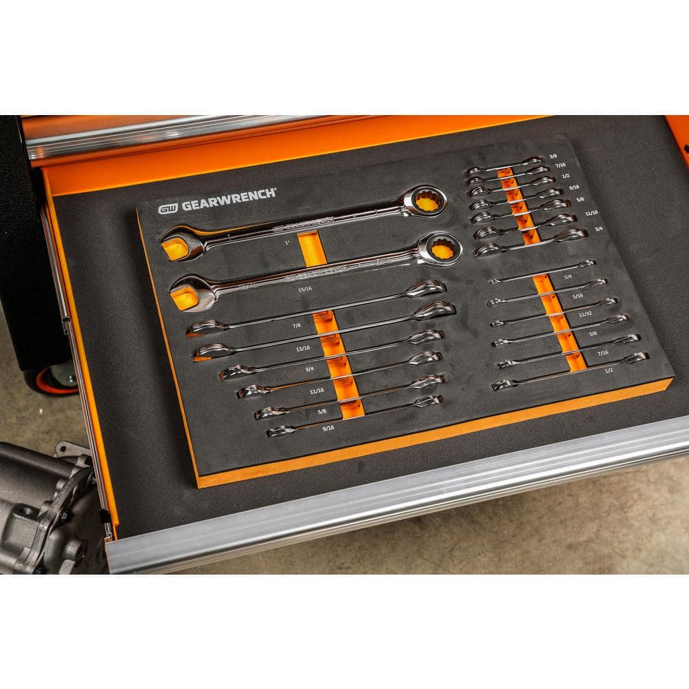 GEARWRENCH 21-Piece 72T SAE Standard and Stubby Ratcheting Wrench Set with EVA Foam Tray