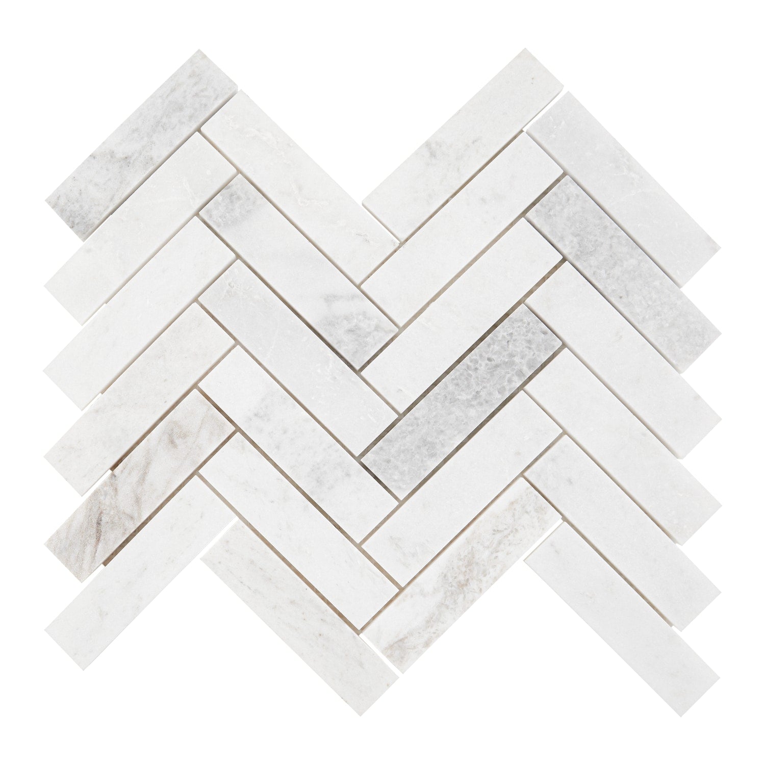 Bring home the timeless elegance of honed White Ember marble and elevate your space with a tailored herringbone statement.