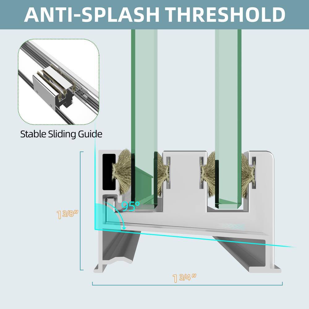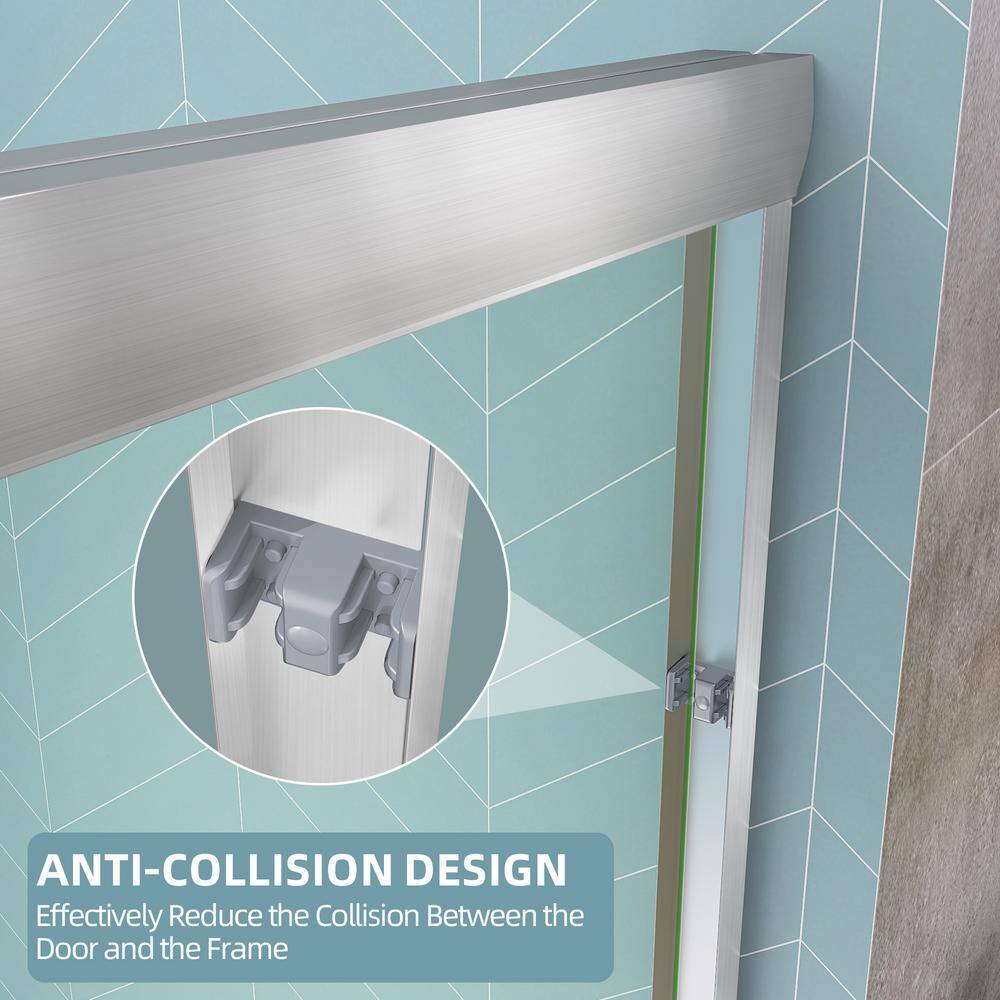Q: What safety features does the door include? A: The tempered glass is designed to be sound-proof and shatter-resistant. Additionally, anti-collision silicone pads are built into the frame to absorb impacts.